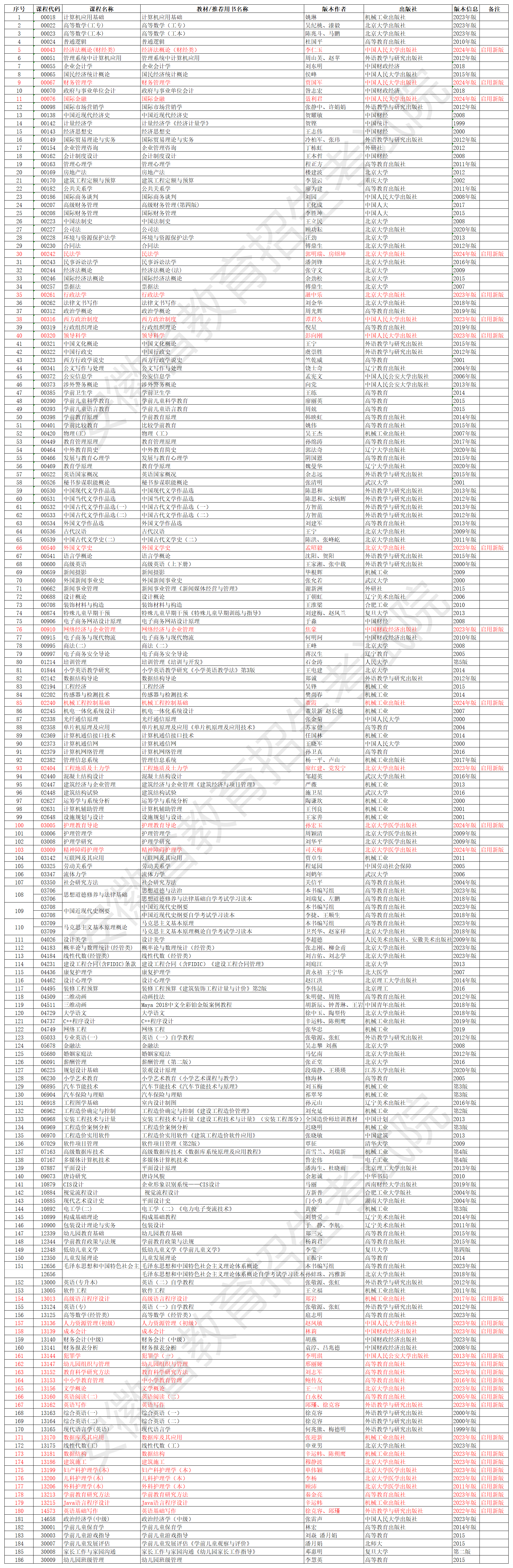 热点推荐:全国各省市2024年自考教材大纲目录