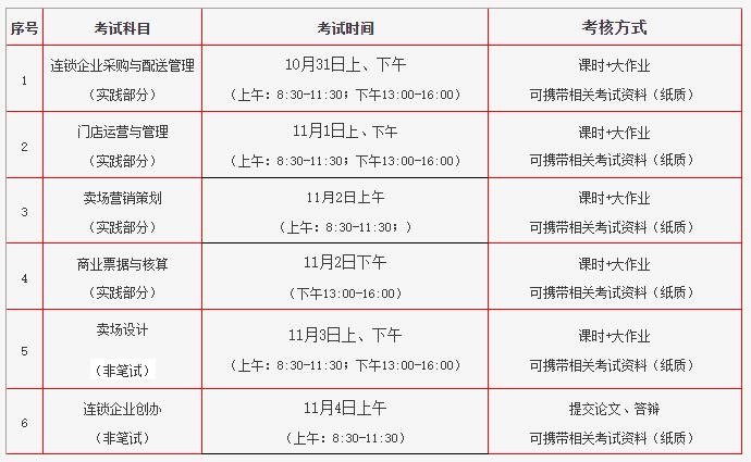 2022年下半年由北京财贸职业学院主考的连锁经营管理专业(专科)实践考核共有6门,室内设计专业(专科)实践考核共有2门,经我办研究决定,计划分别定于10月31日-11月04日和11月3日举行考试。现将具体考试计划安排如下: