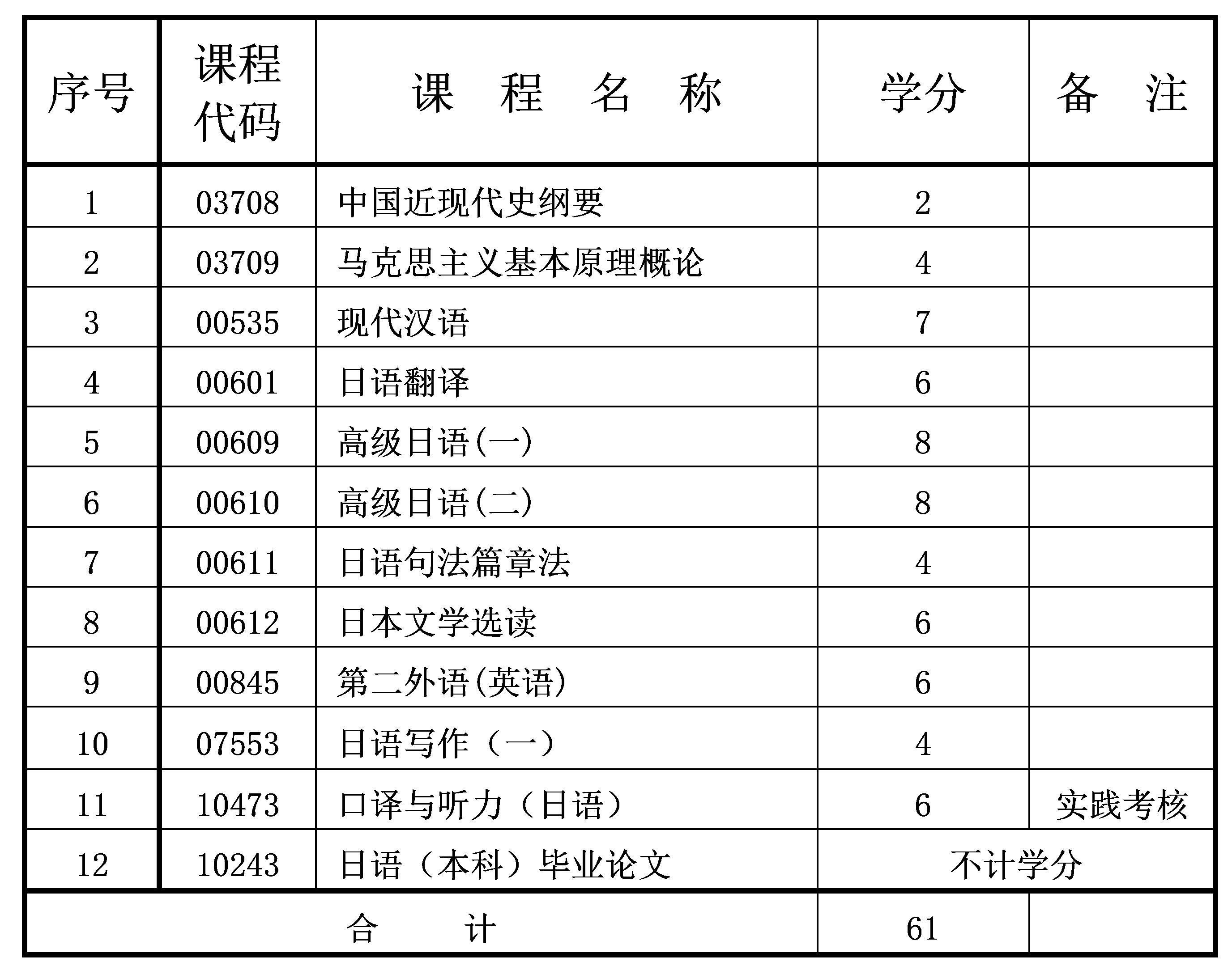 2024年4月重庆自考本科日语专业计划