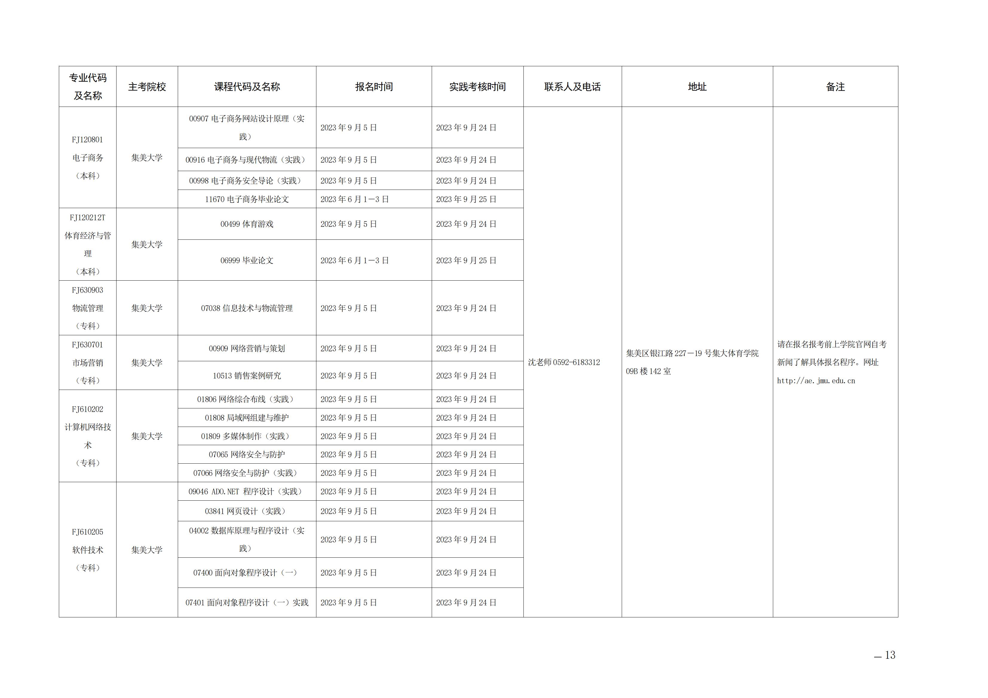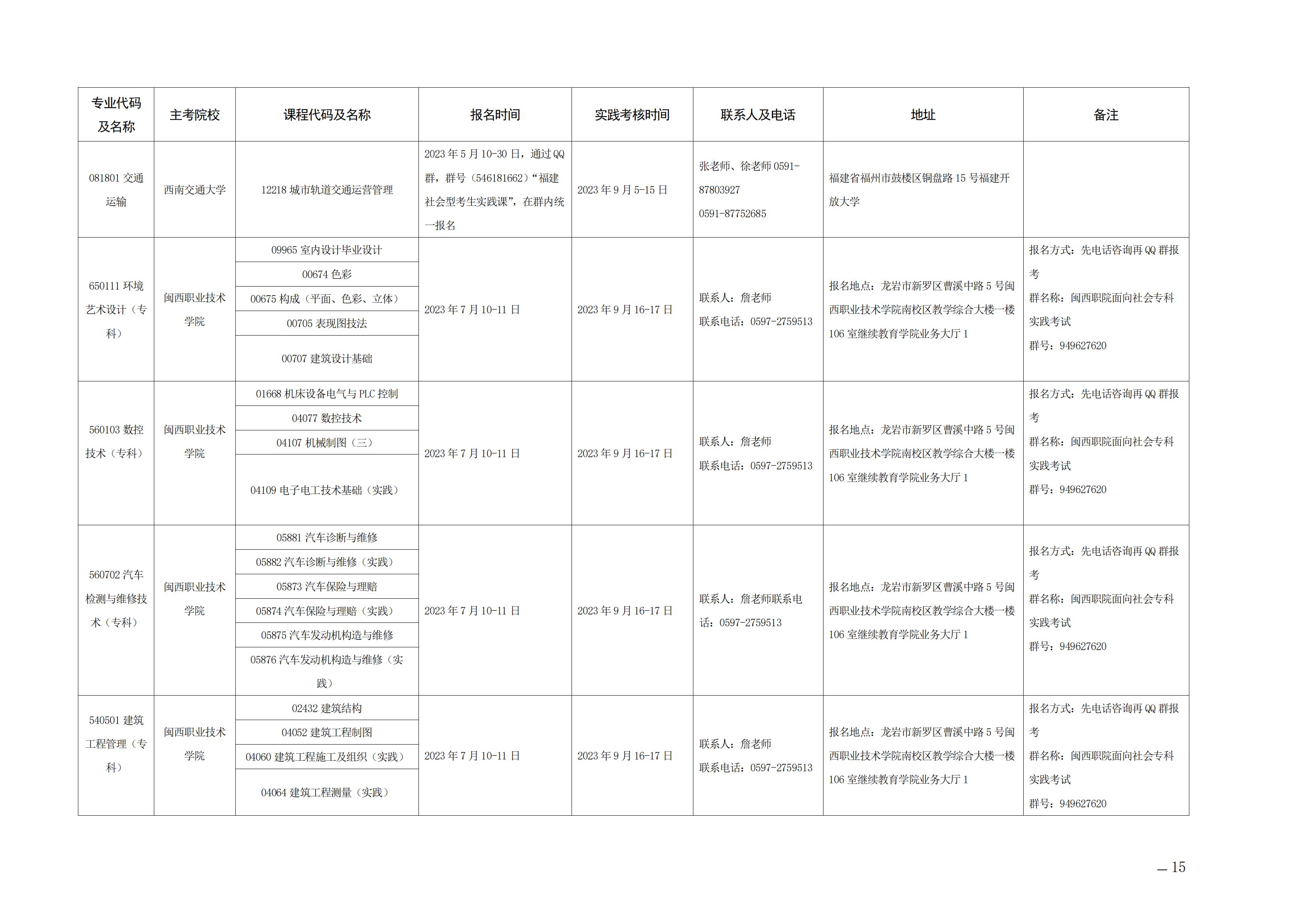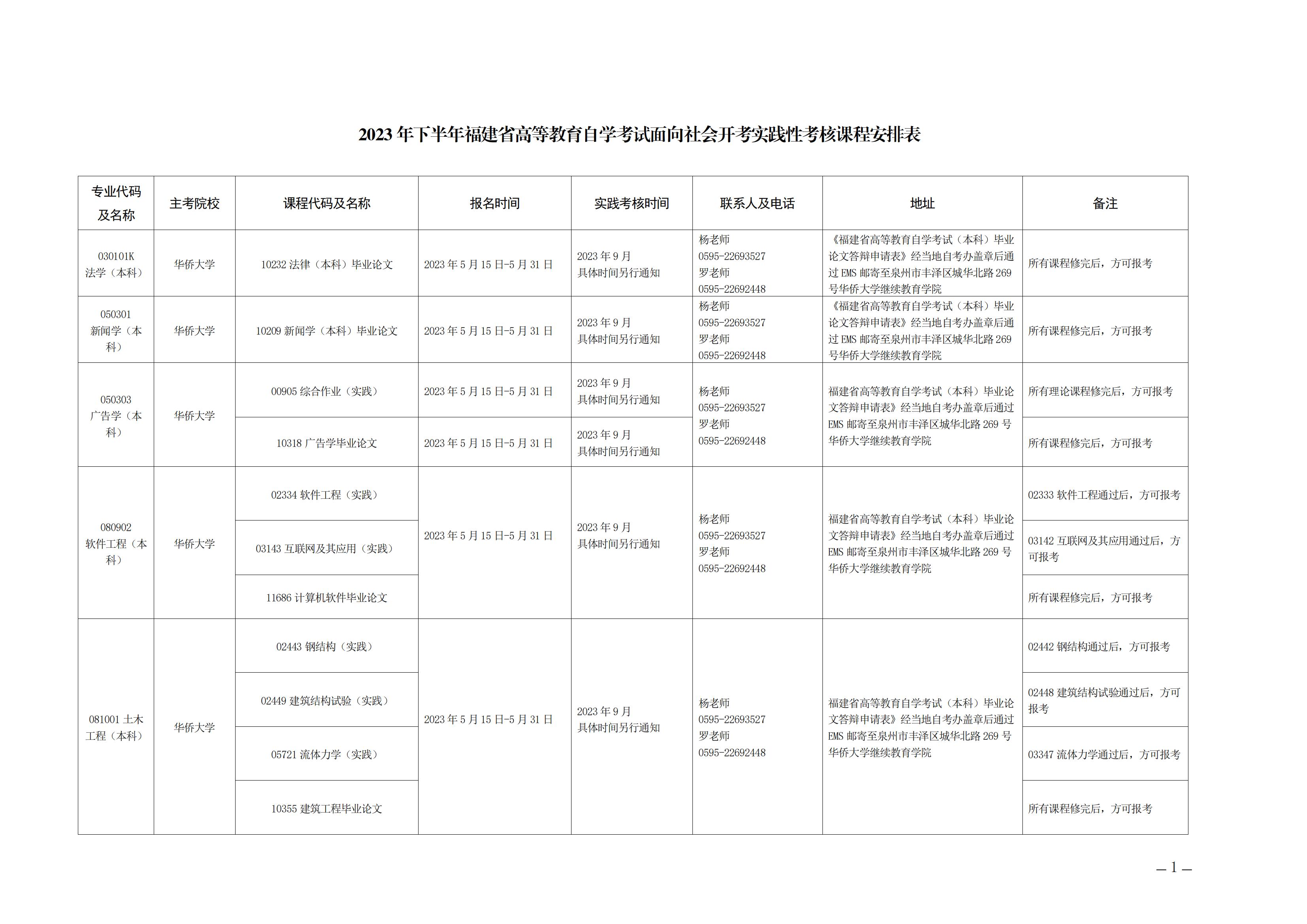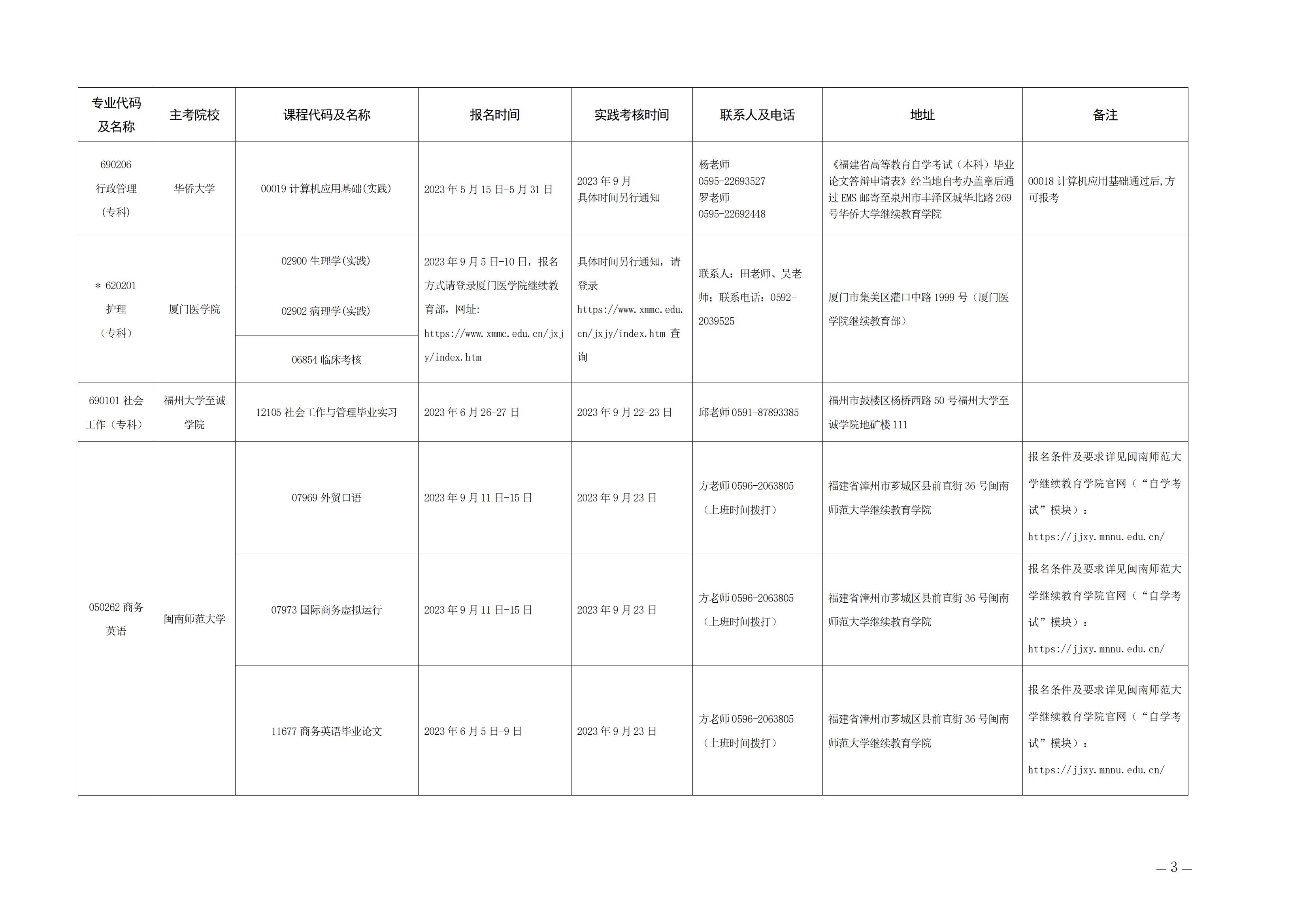 现将《2023年下半年福建省高等教育自学考试面向社会开考实践性考核课程安排表》(点击下载附件)印发给你们,请广泛宣传并做好报名组织工作。各主考院校要认真安排好实践性考核各环节的工作,并及时为考生答疑解惑。