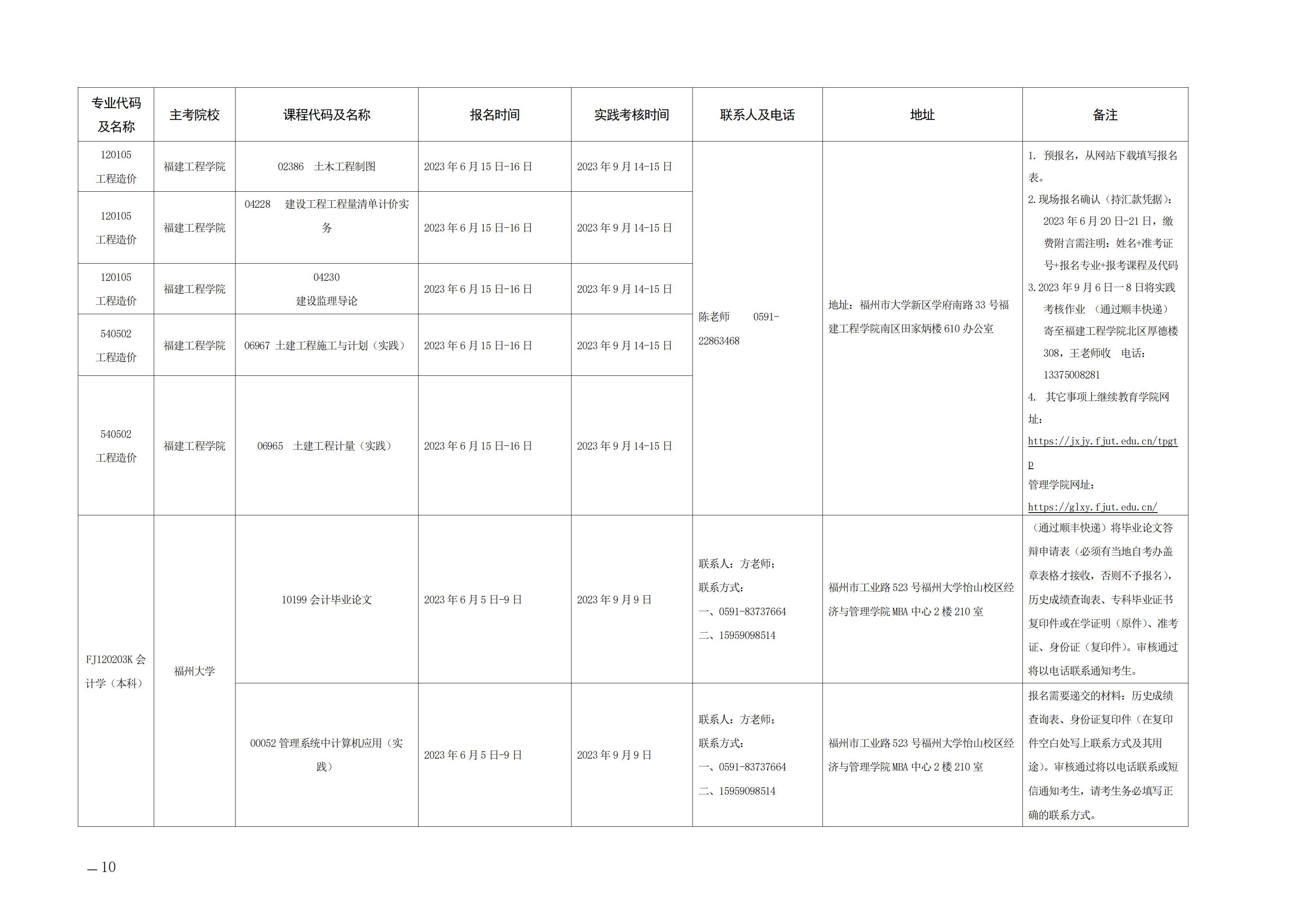 - 2023年10月福建自考本科会计学考试安排