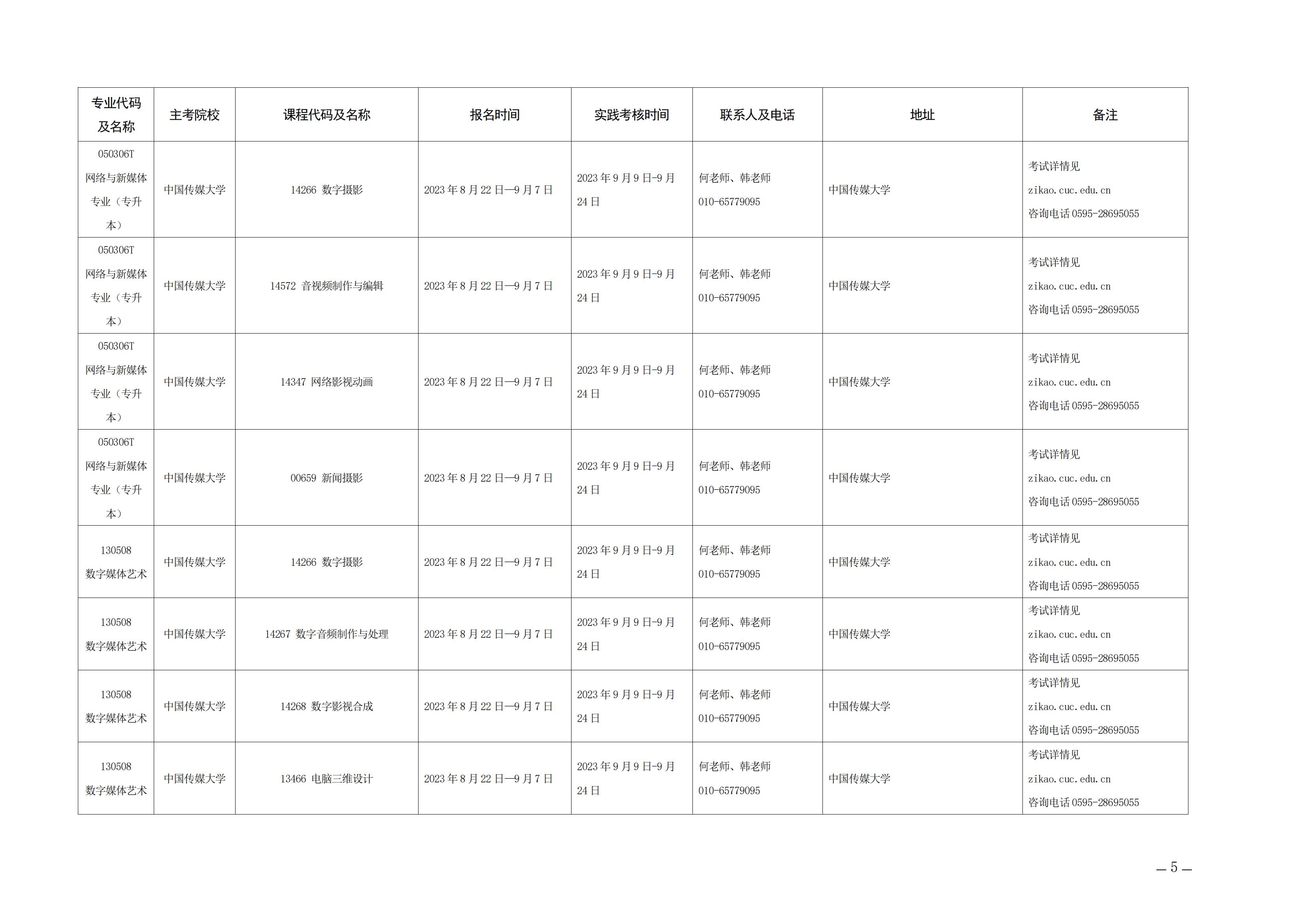 - 中国传媒大学关于福建2024年上半年自考面向社会开考专业实践性考核课程报名通知