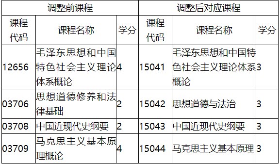 (一)已通过的思想政治理论课程可对应顶替调整后的思想政治理论课程。对应顶替关系如表所示