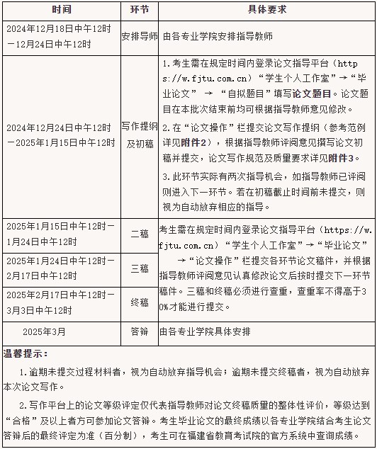 2025年上半年福建师范大学自考本科毕业论文指导与答辩工作的通知