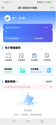 获取一年内(含一年)开具的厦门市财政电子票据,可在“我的票夹”中查看。