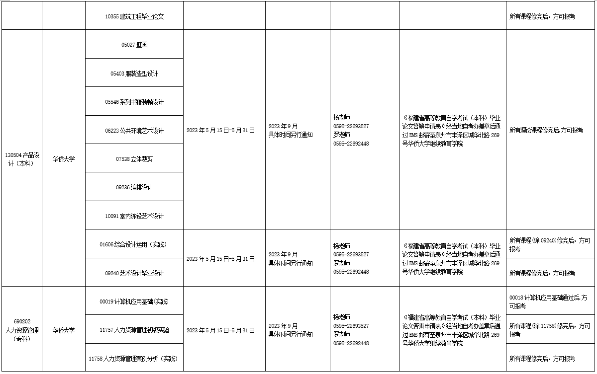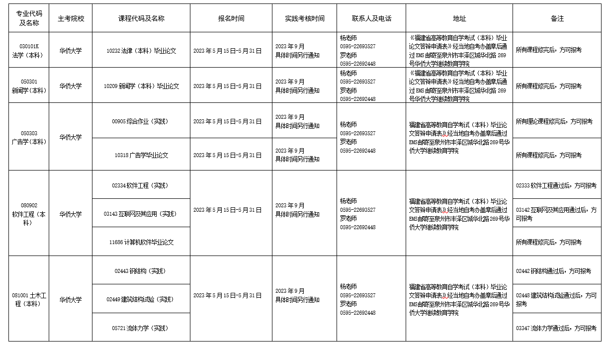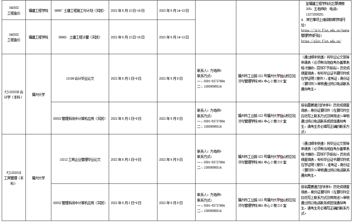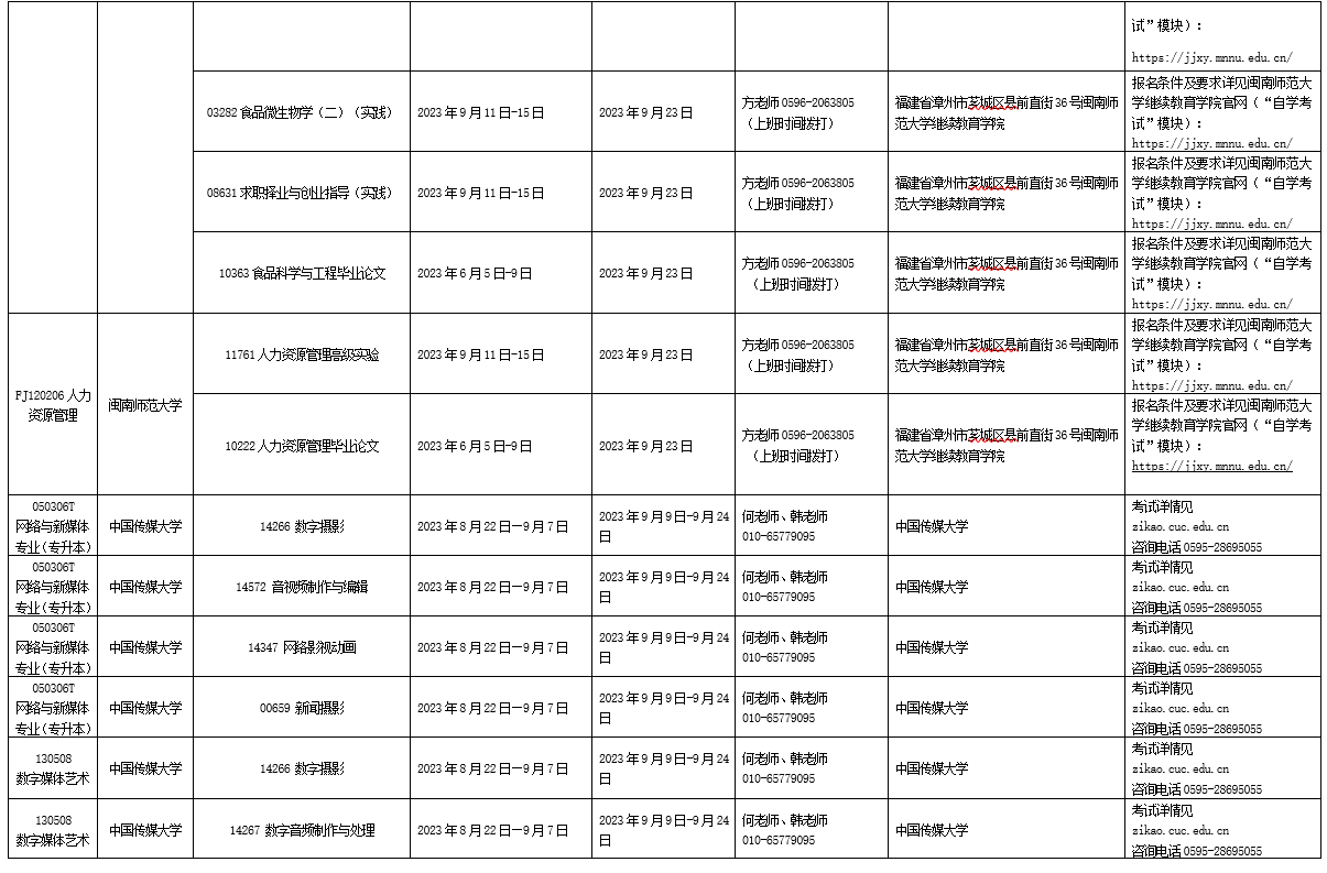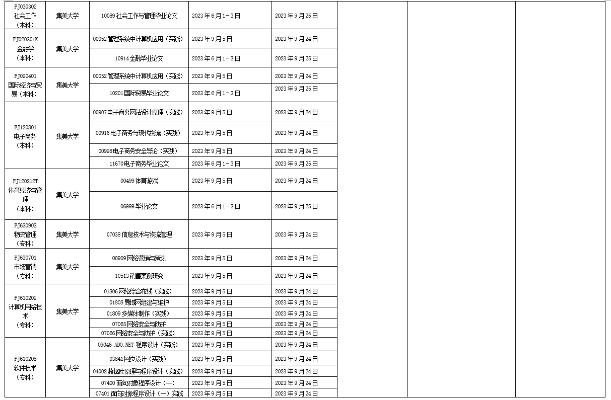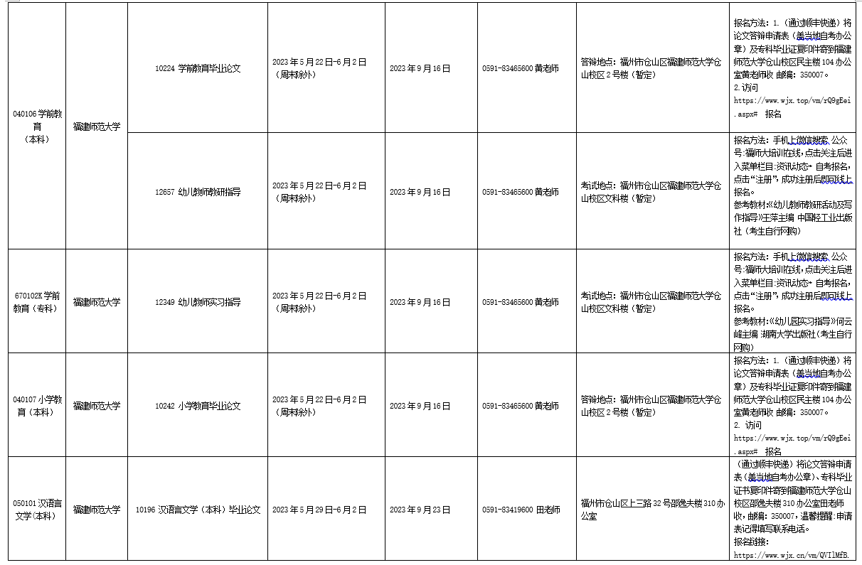 详见附件:2023年下半年福建省高等教育自学考试面向社会开考实践性考核课程安排表