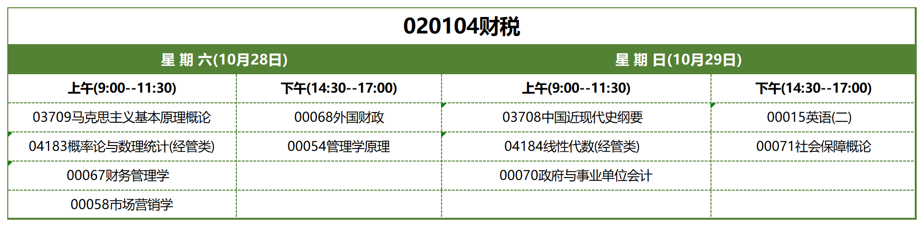 甘肃自考本科-财税,10月考期具体考试安排如下: