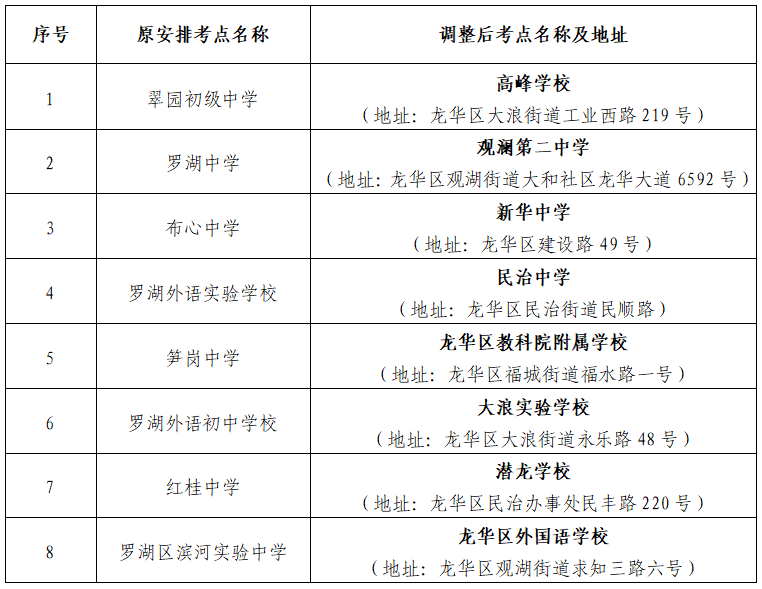 深圳市2022年1月自学考试补考将于7月9日至10日举行,鉴于当前疫情形势变化,为最大限度保障考生和考试工作人员的生命安全和身体健康,经研究,将原安排在罗湖区考点参加考试的全部考生整体平移安排在龙华区考点参加考试。具体安排如下: