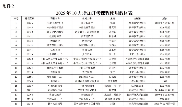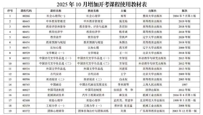 2.2025年10月增加开考课程使用教材表