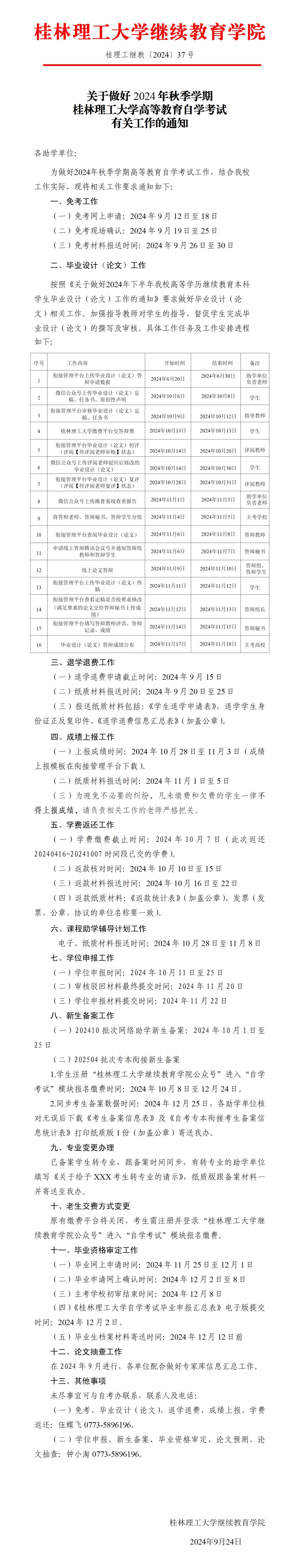 关于做好2024年秋季学期桂林理工大学高等教育自学考试有关工作的通知