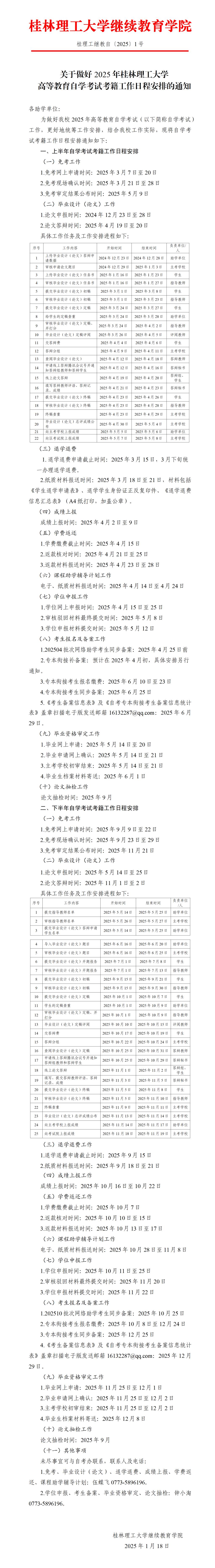 2025年桂林理工大学高等教育自学考试考籍工作日程安排1