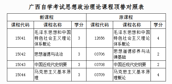 关于调整广西高等教育自学考试思想政治理论课程设置的公告