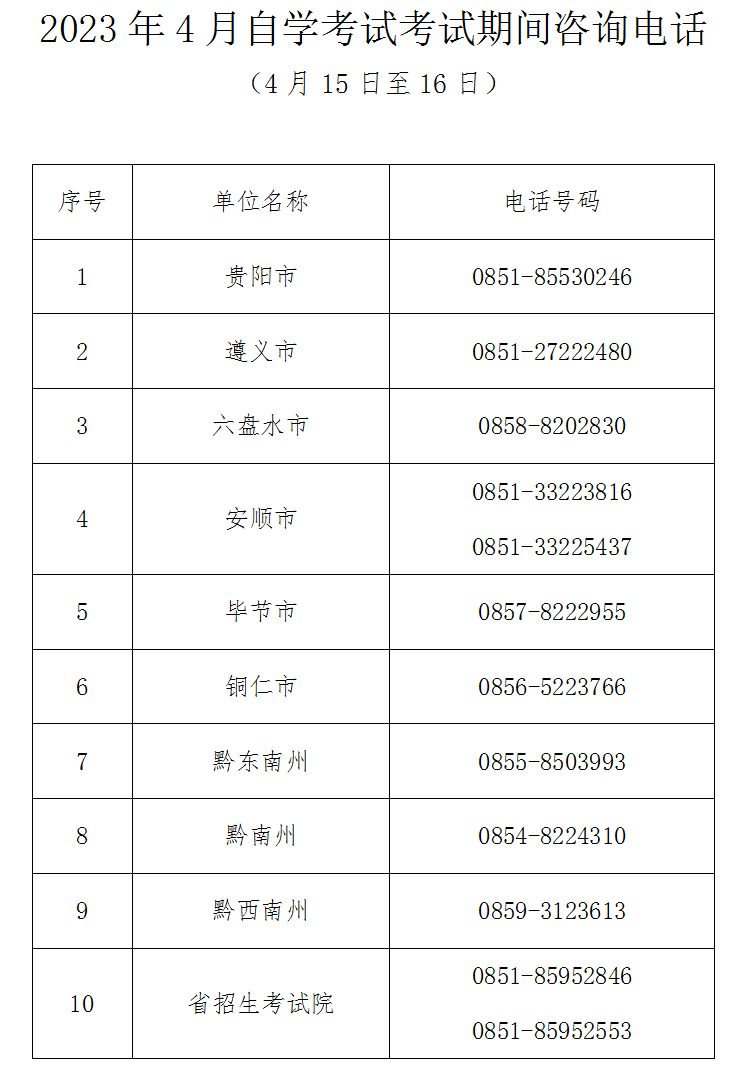 贵州省2023年4月高等教育自学考试考前温馨提示