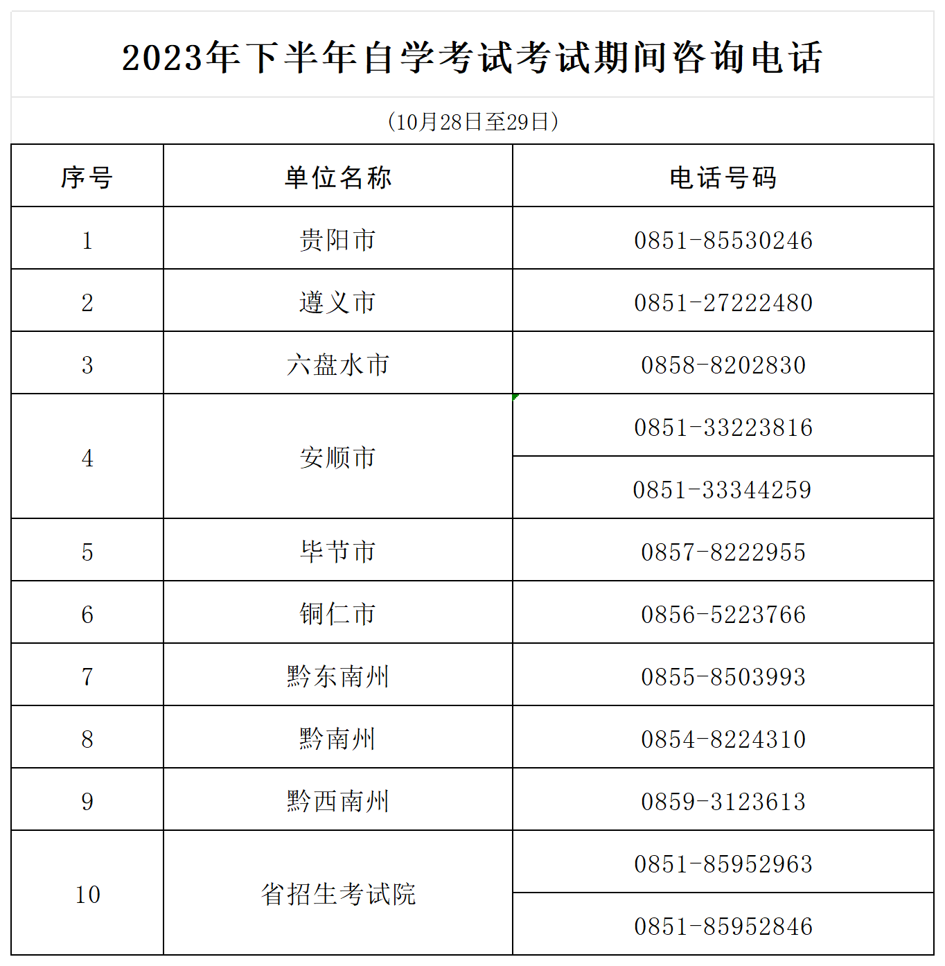 贵州省2023年下半年高等教育自学考试将于10月28日至29日进行。为确保广大考生顺利参考,现将有关事项提醒如下: