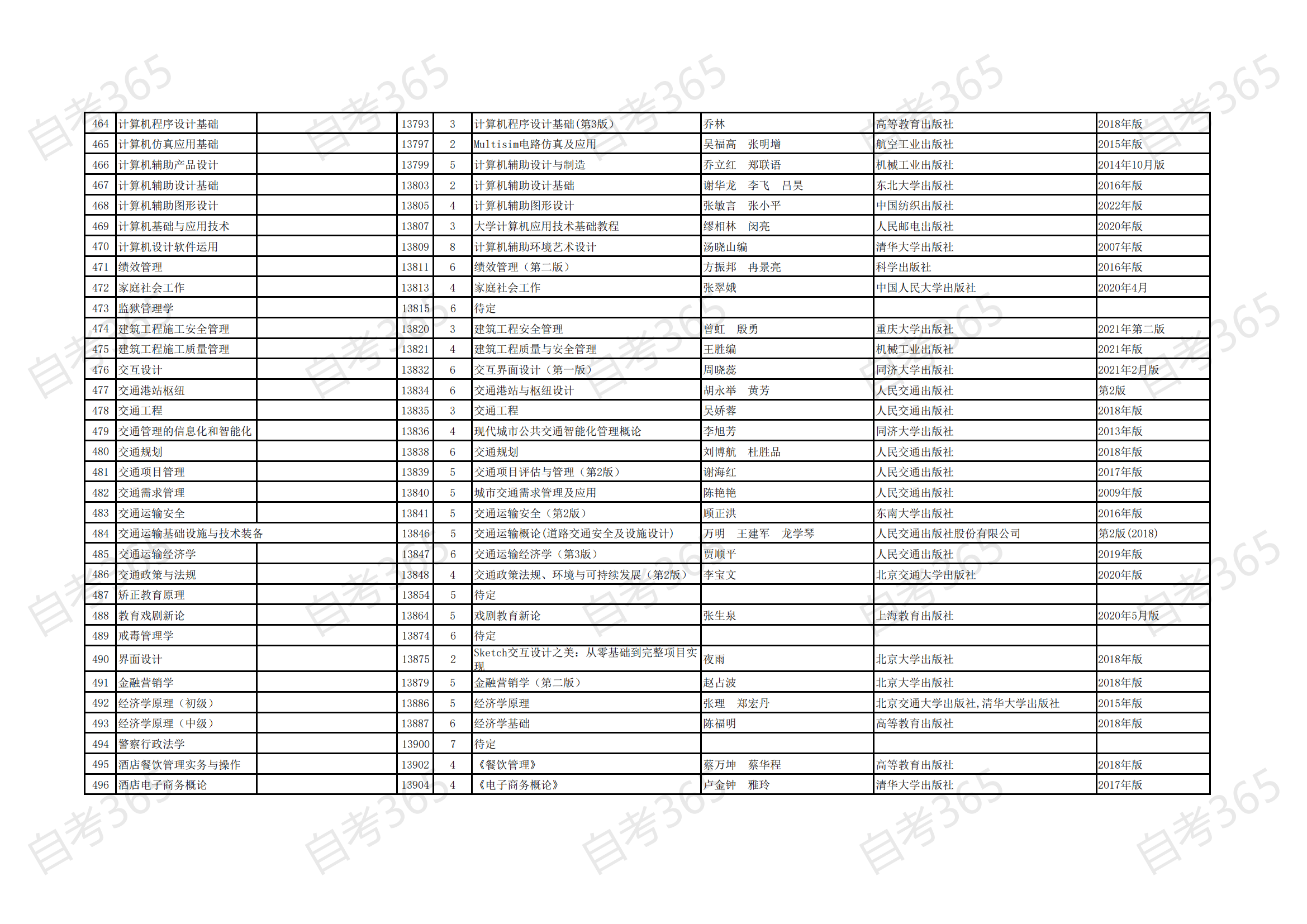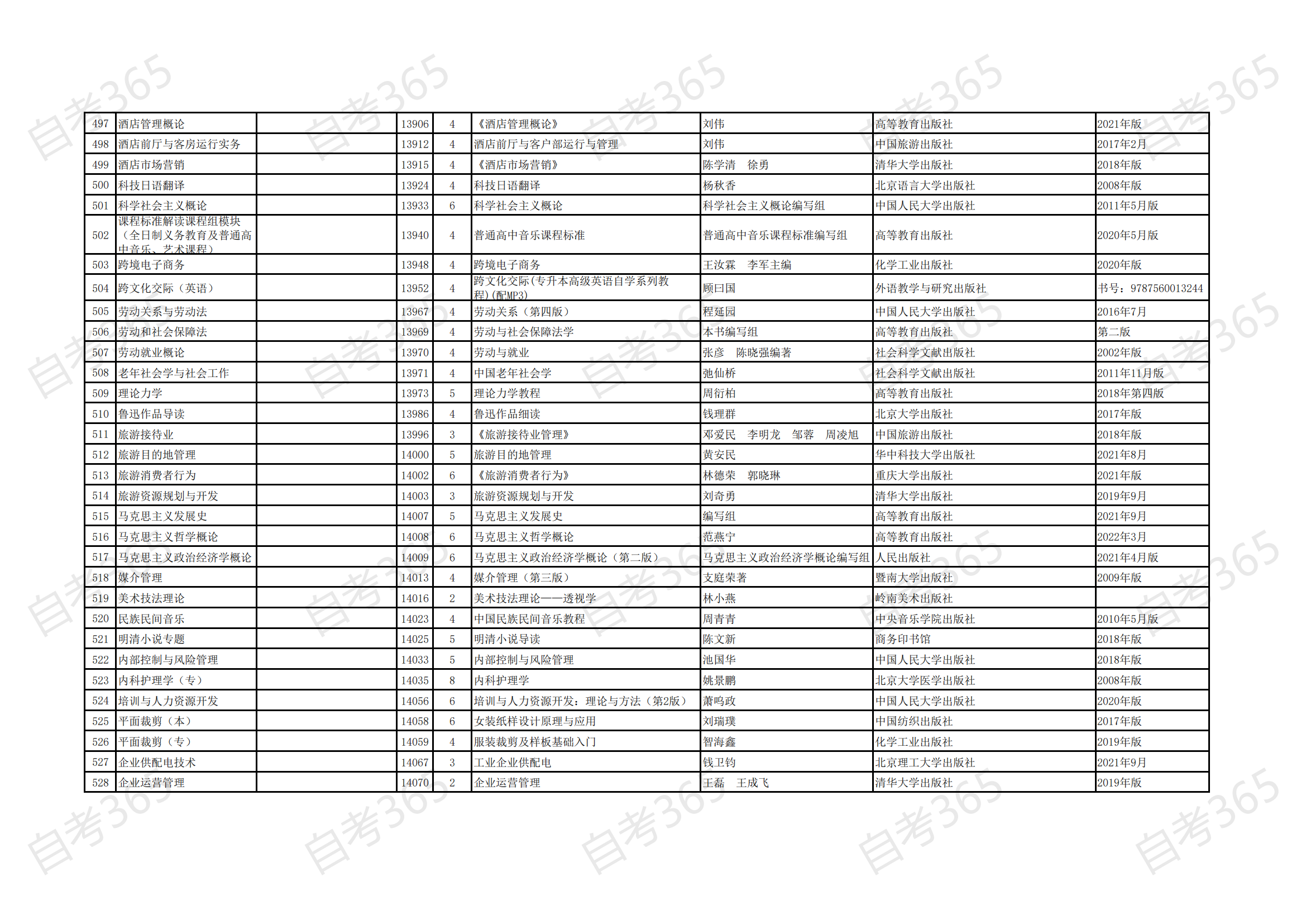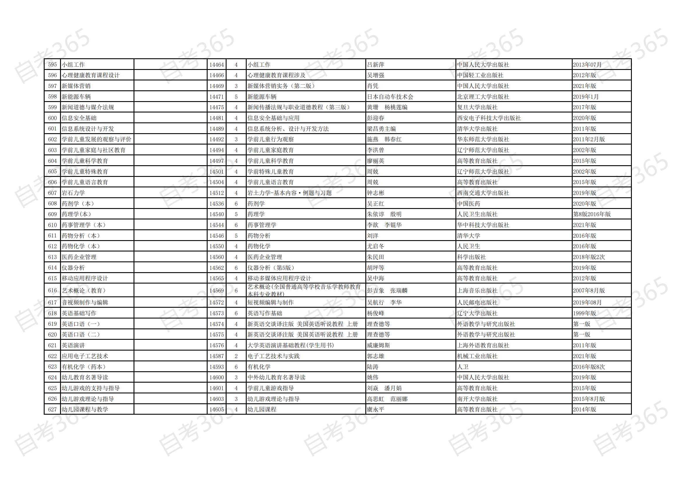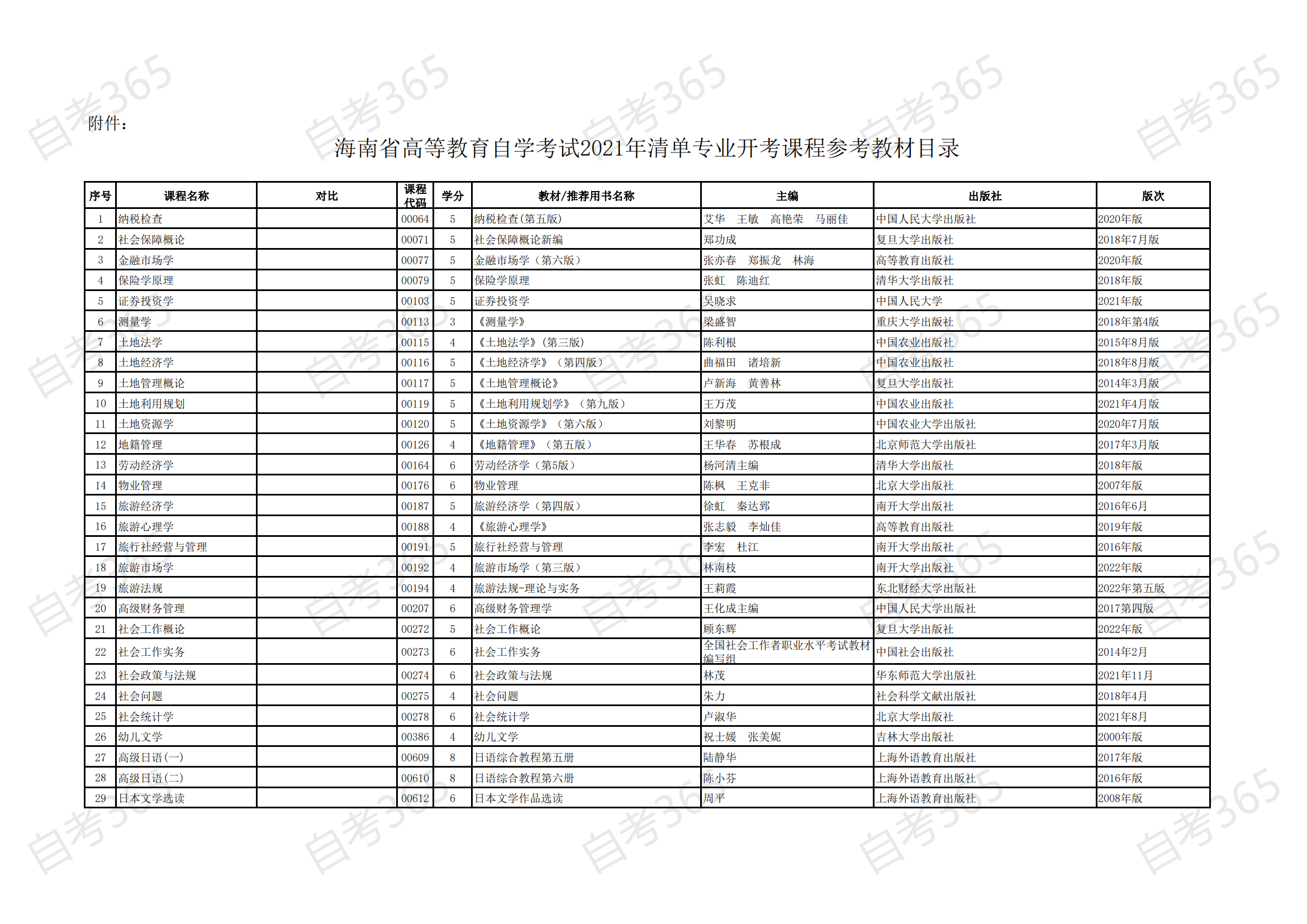 附件:海南省高等教育自学考试2021年清单专业开考课程参考教材目录