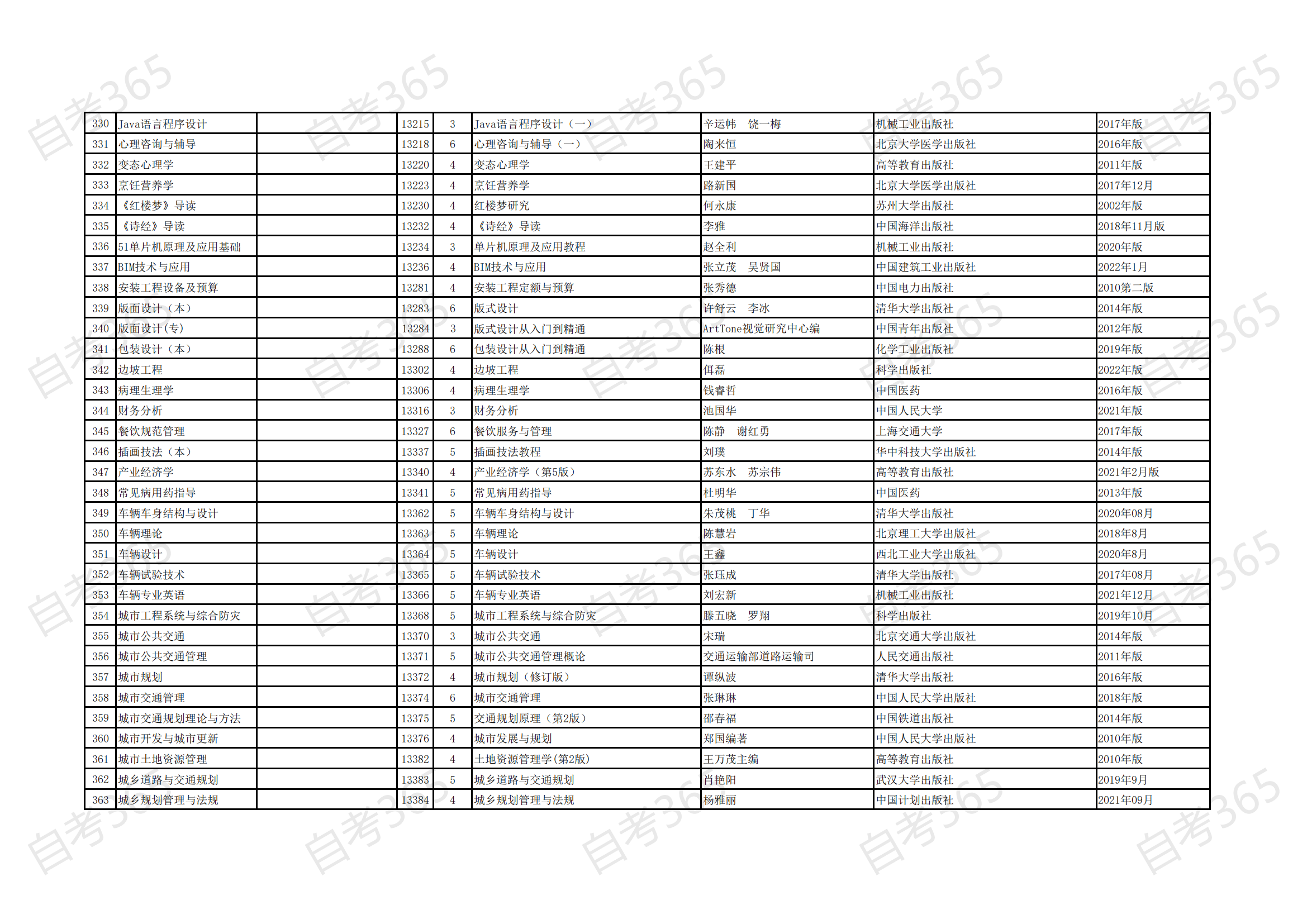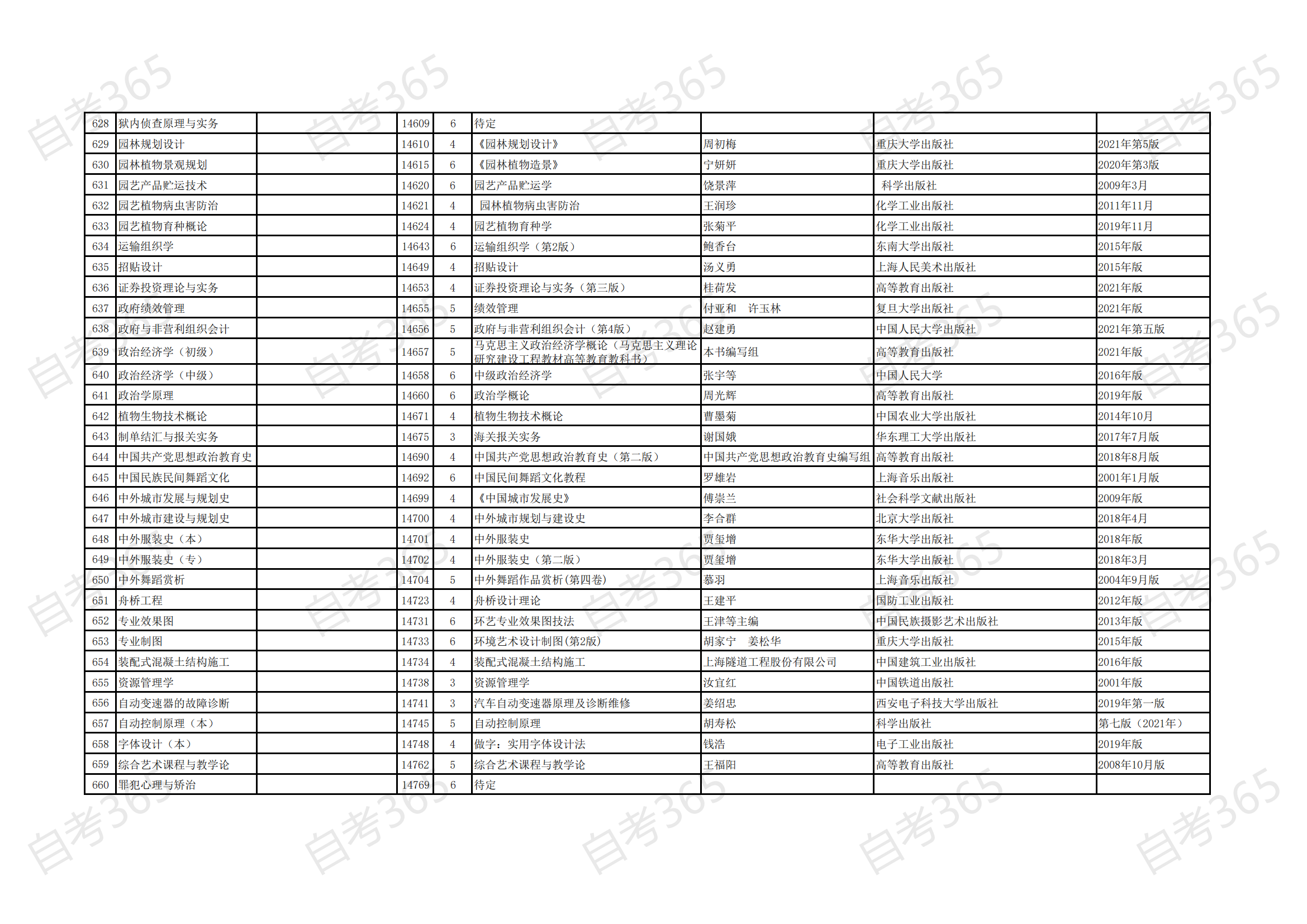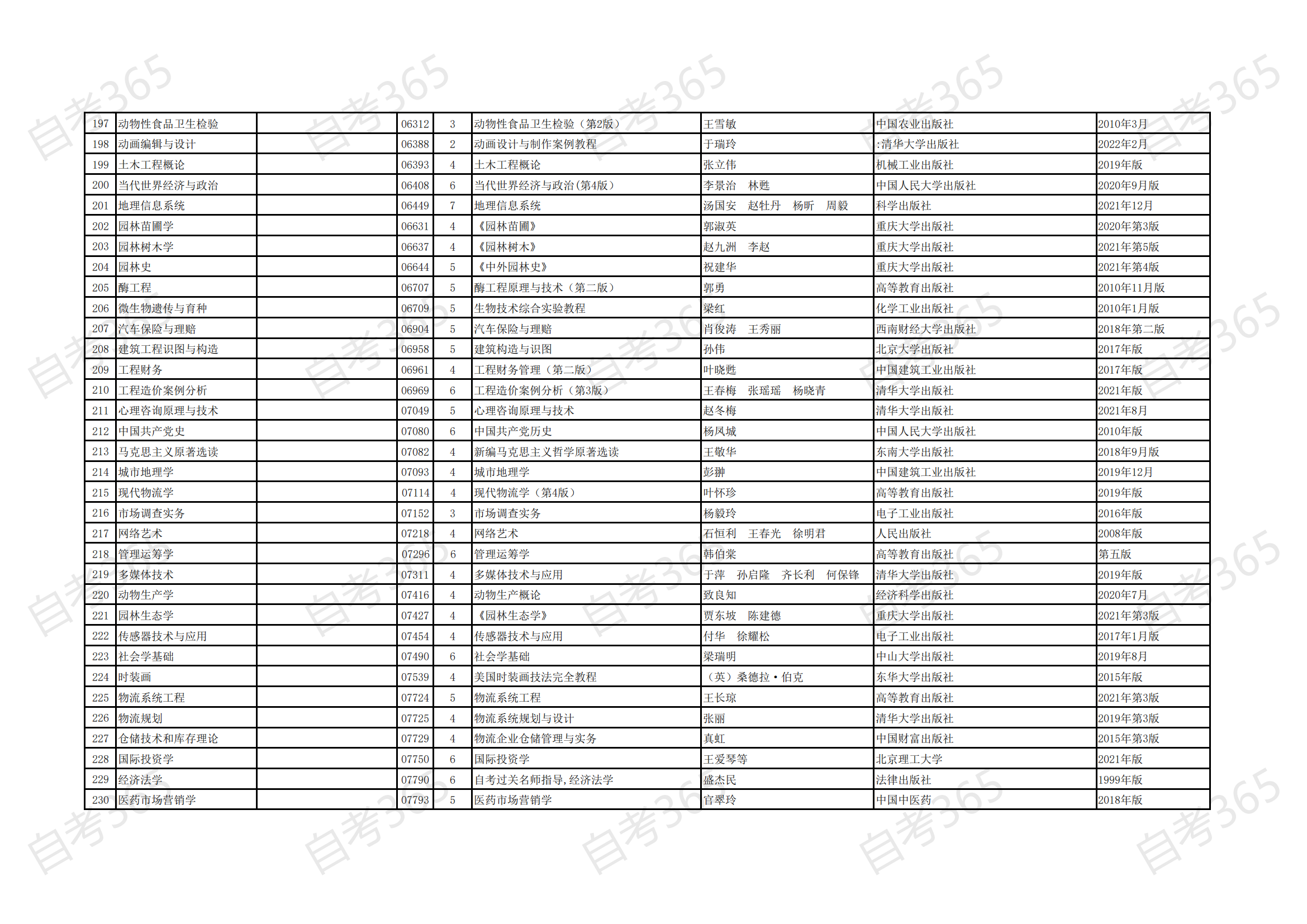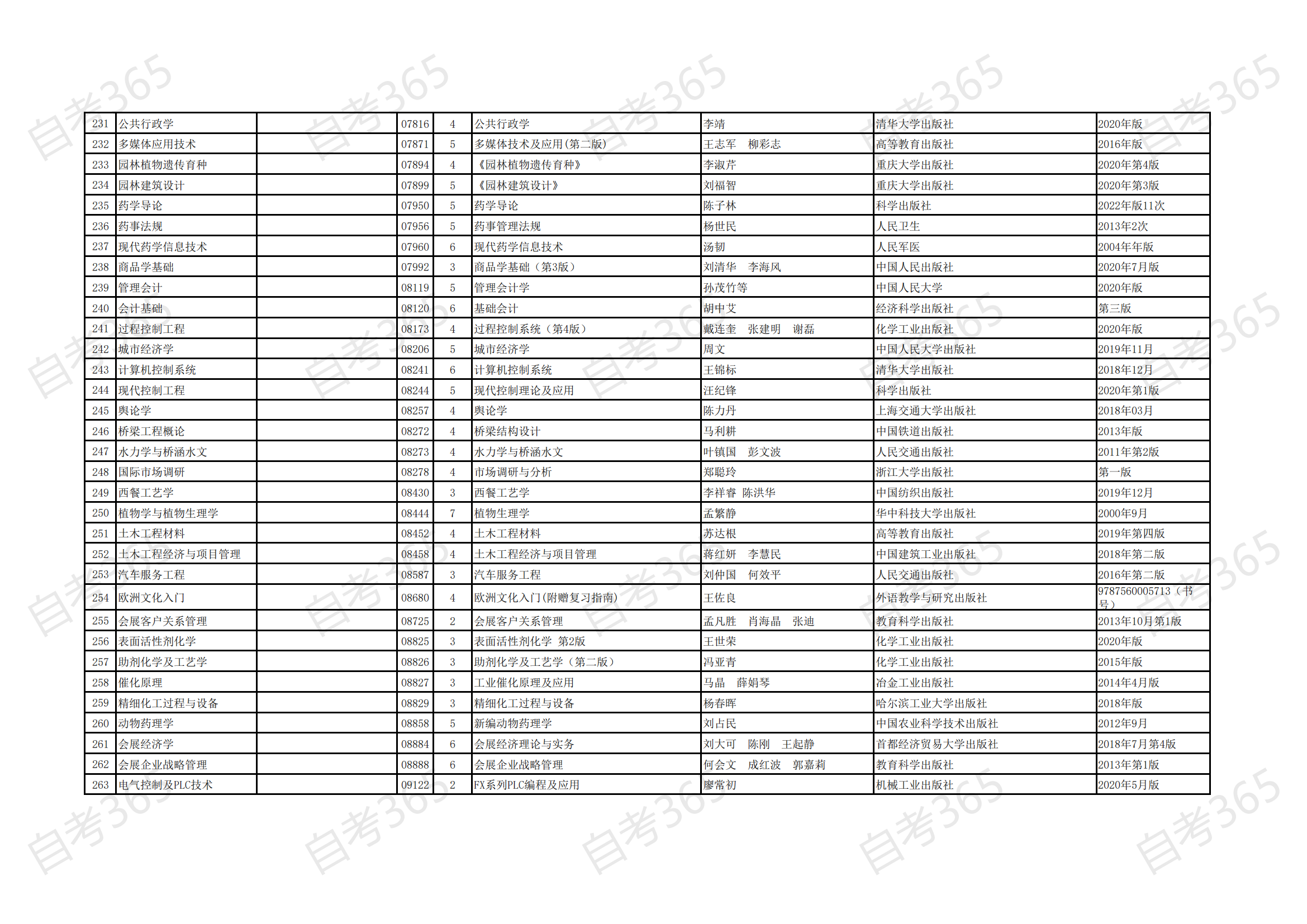 附件:海南省高等教育自学考试2021年清单专业开考课程参考教材目录