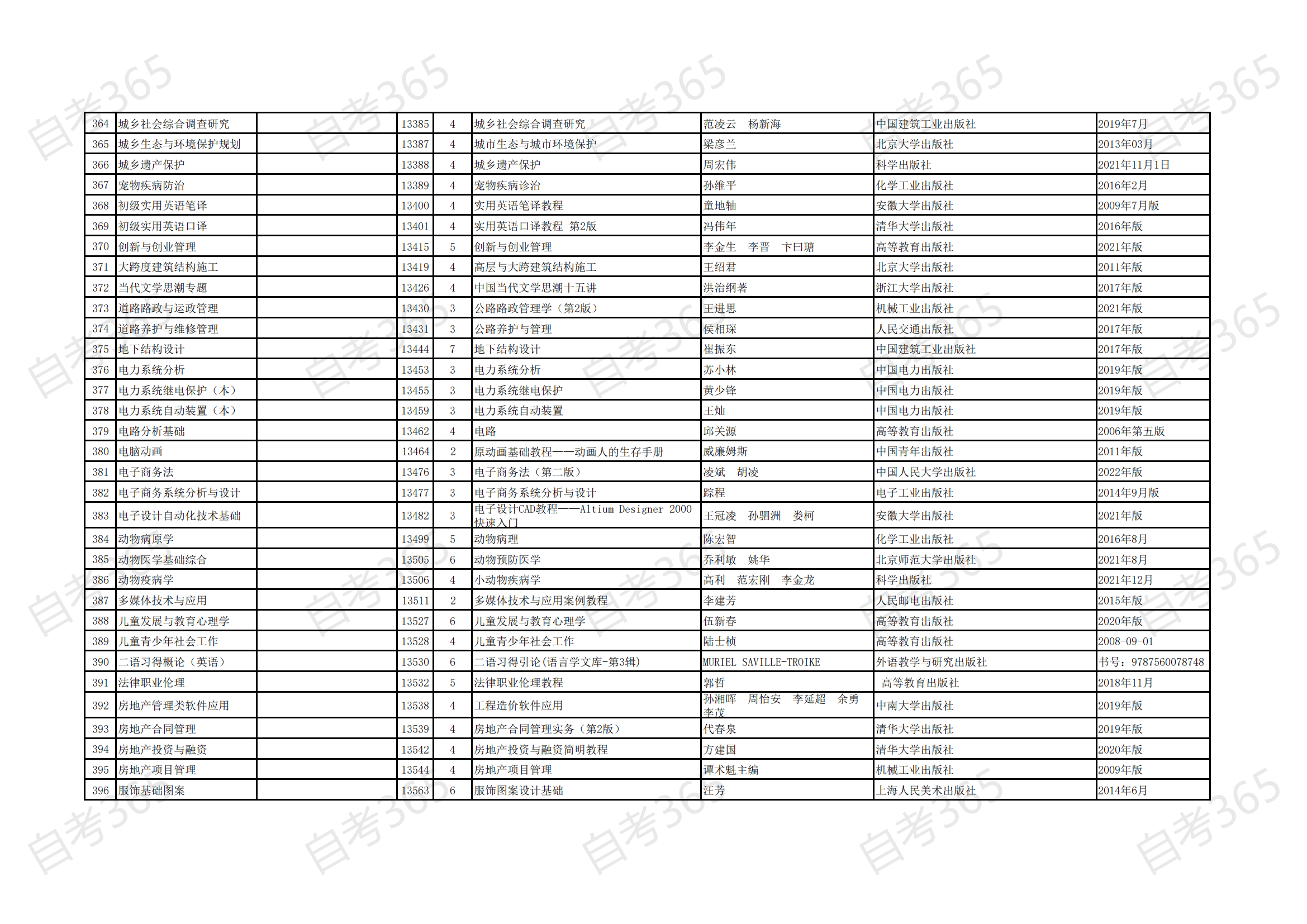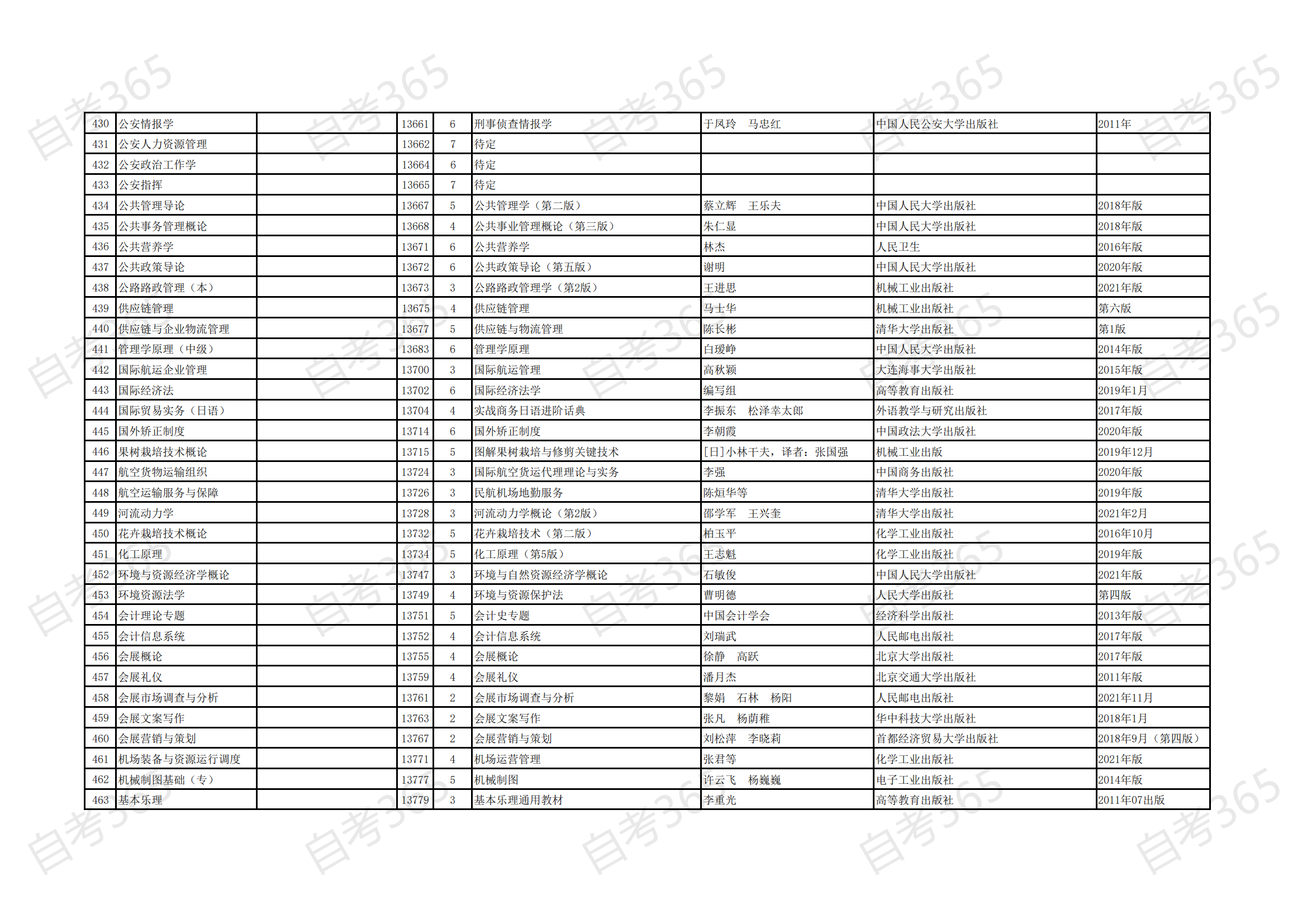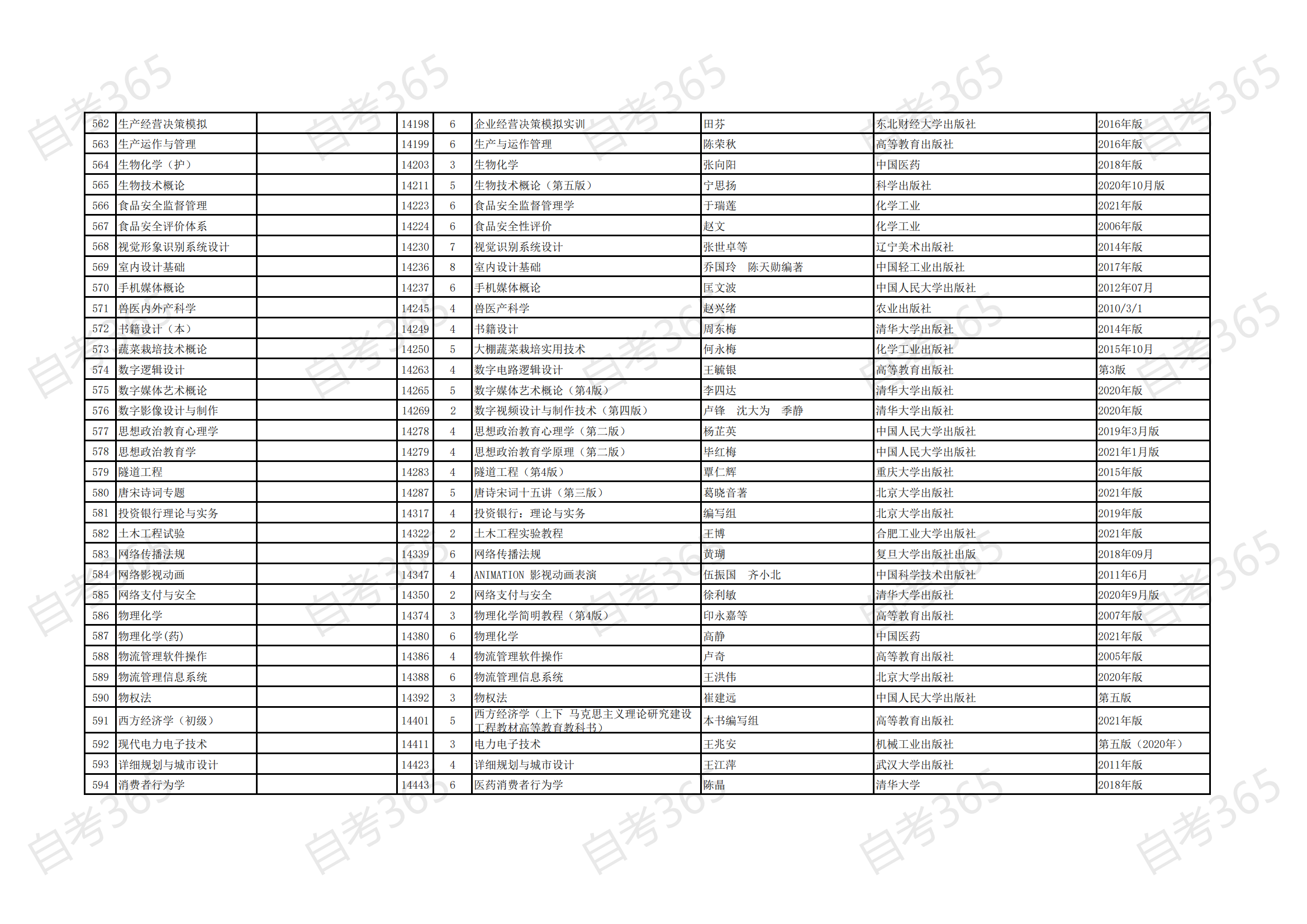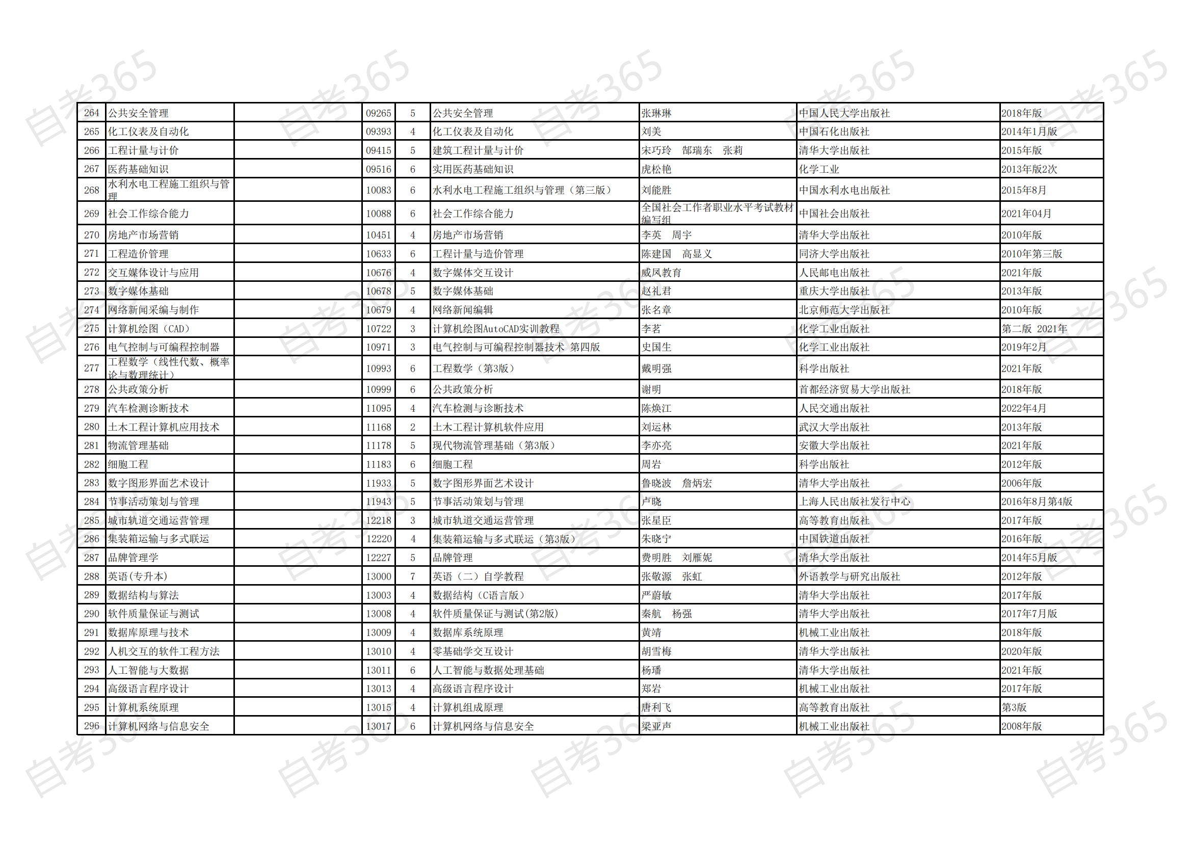 附件:海南省高等教育自学考试2021年清单专业开考课程参考教材目录