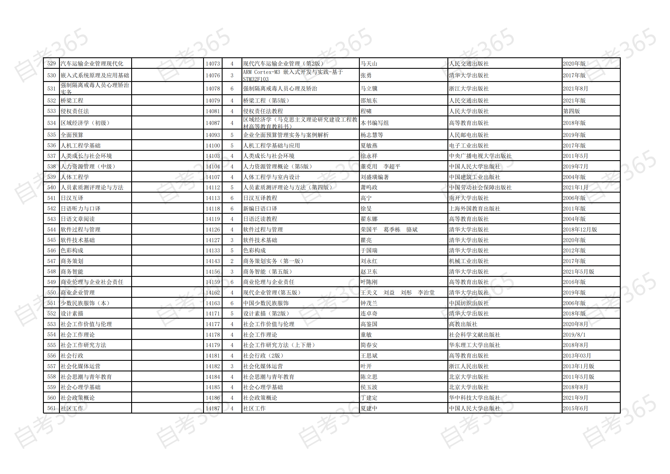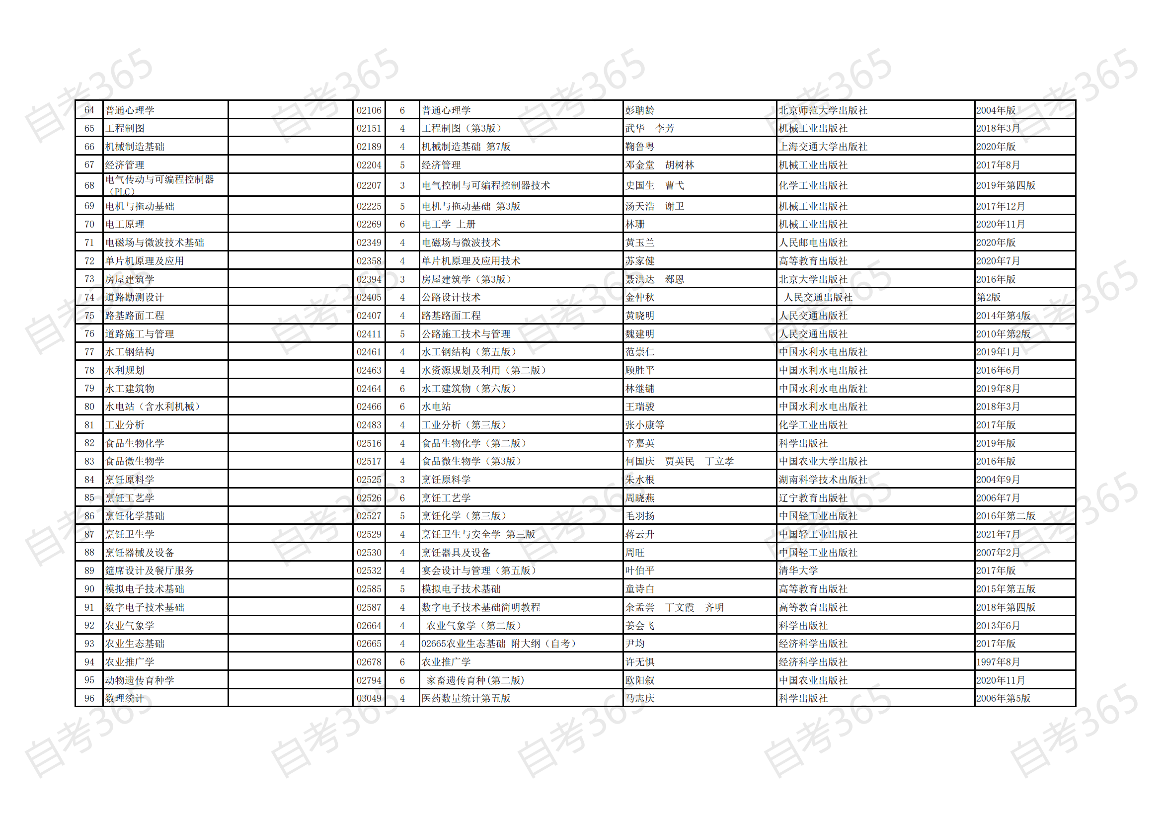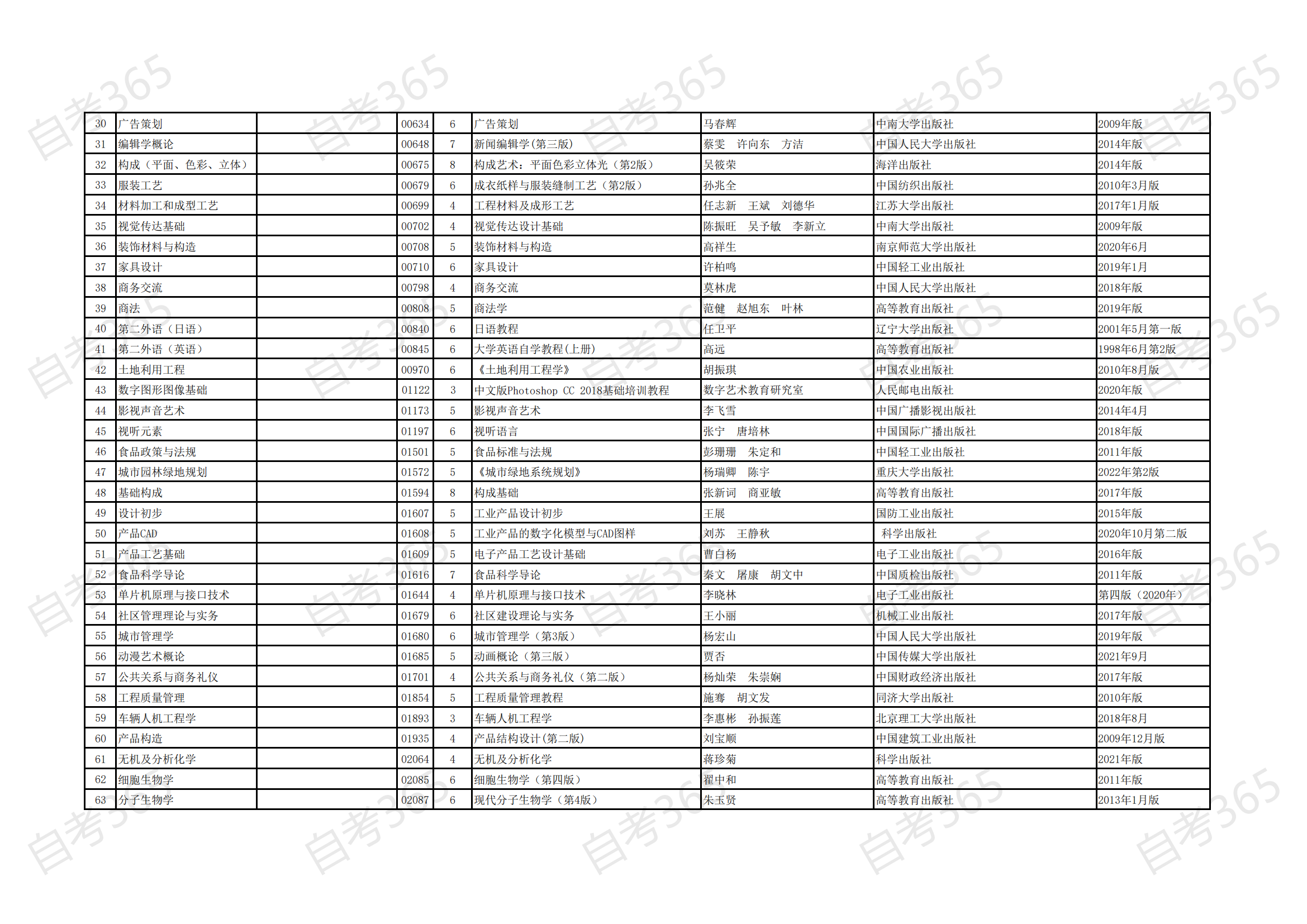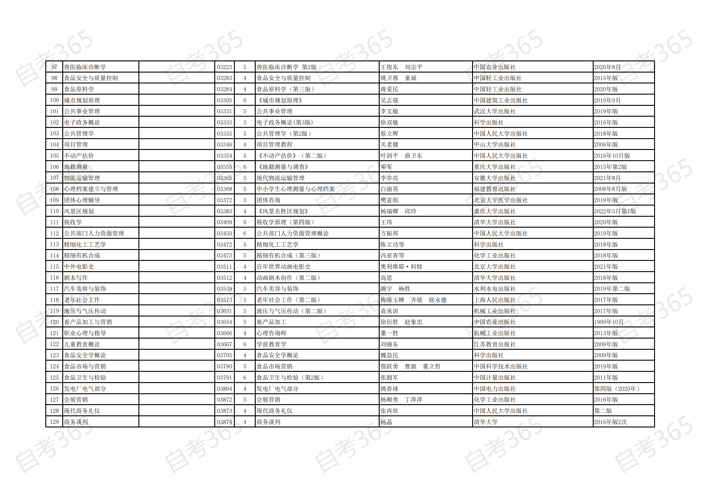 附件:海南省高等教育自学考试2021年清单专业开考课程参考教材目录