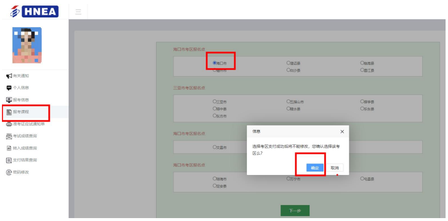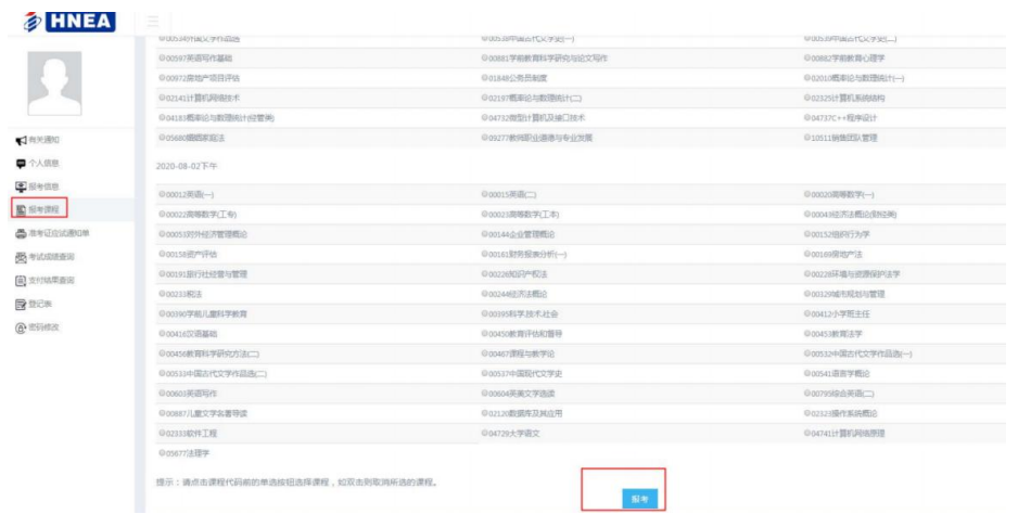 5、不需要更改报考专业时,点击【不需要更改】按钮,直接进行报考课程进行报考即可