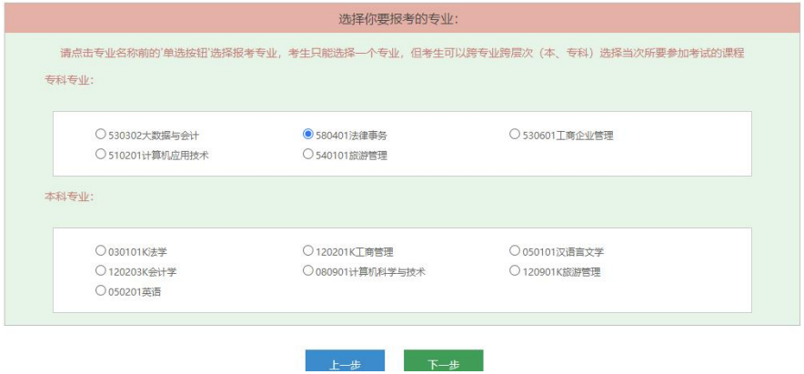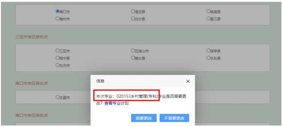 4、显示本次报考专业代码和名称,提示是否需要修改专业;