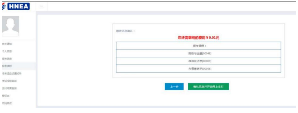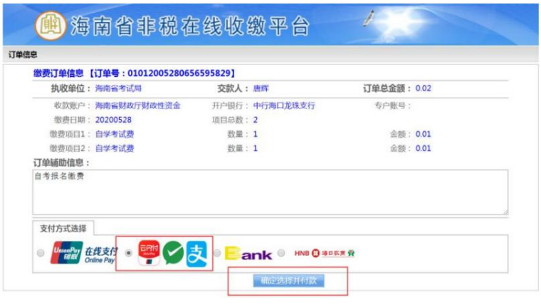 6、确认报考课程后,生成订单进行网上支付,支持银联卡在线支付、微信/支付宝支付等
