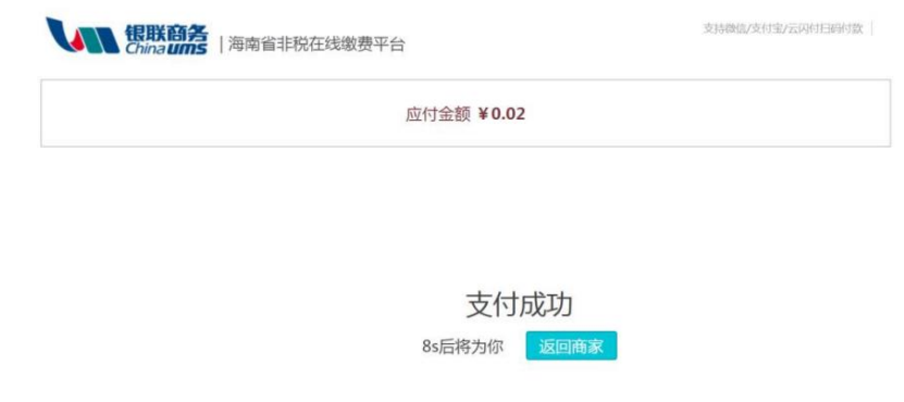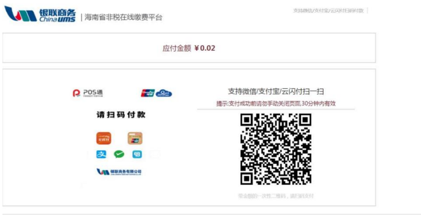 7、选择微信/支付宝/云闪付扫码进行支付,成功后点击返回商家或等待10秒进入网上报名登记表打印页面,点击打印