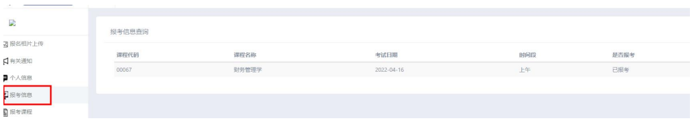 8、支付完成后,点击【报考信息】查看报考课程和考试时间
