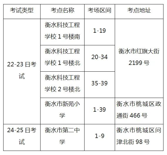 [河北]衡水市2022年10月自学考试考点考场分布示意图