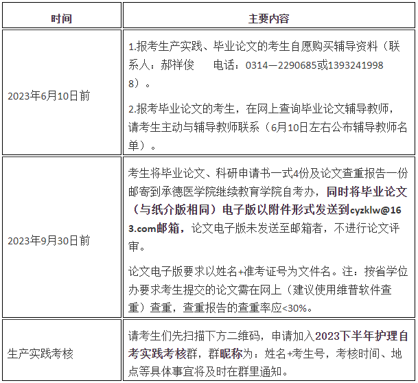 2023年下半年河北省自学考试护理学专业本科实践环节考核具体安排