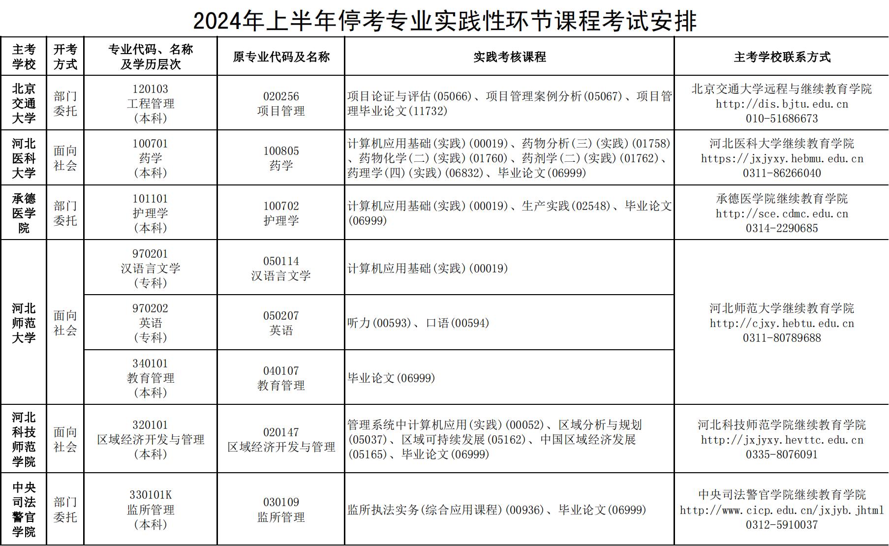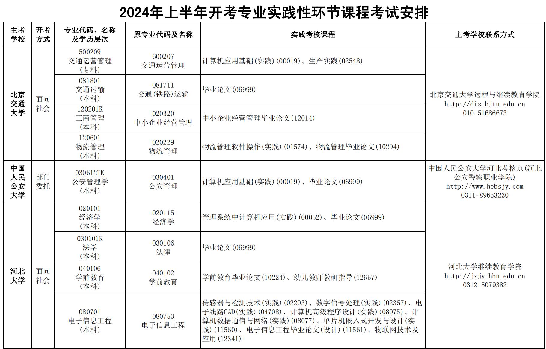 2024年上半年河北自考实践性环节课程考试安排已发布(点击下载),具体实践课程考试时间安排如下: