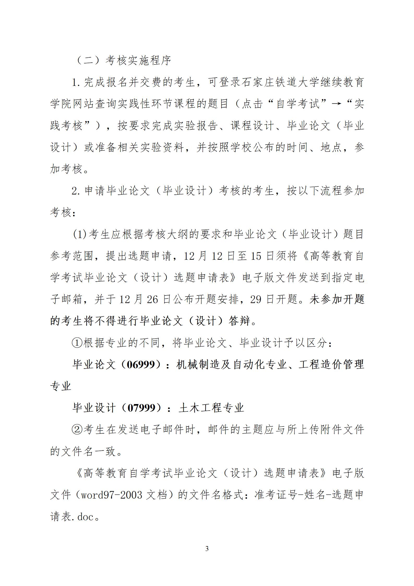 2024年上半年石家庄铁道大学自考试实践性环节课程报考须知3