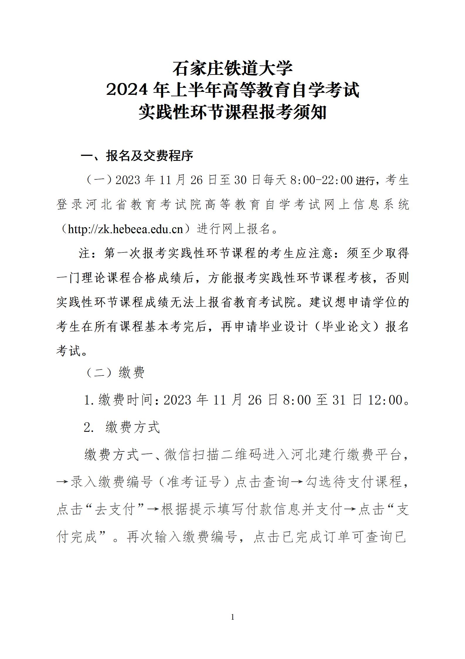 2024年上半年石家庄铁道大学自考试实践性环节课程报考须知1
