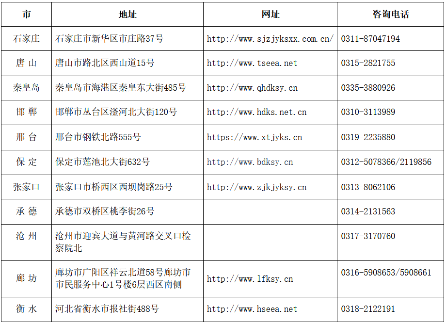 2025年下半年河北省高等教育自学考试各市教育考试院联系方式