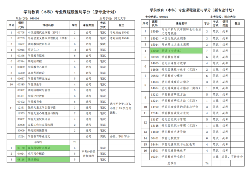 (1)本科专业原计划设置“00015英语(二)(14学分)”,新计划设置“13000英语(专升本)(7学分)”。