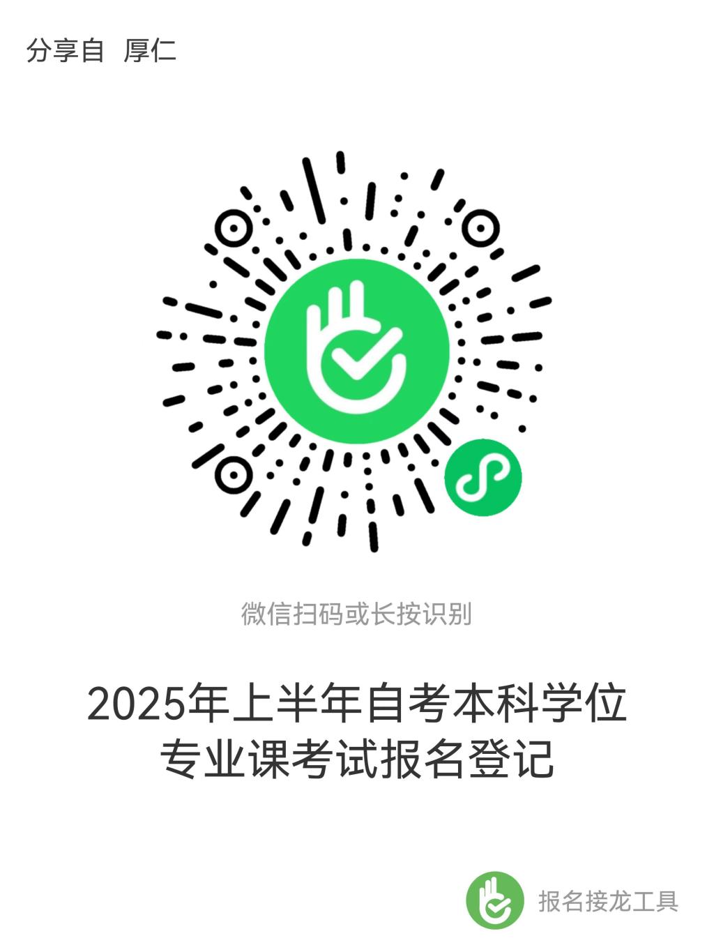 .填报信息:在校本科生报的自考二学历直接在班主任老师处报名,其他考生请用微信扫面下方二维码填报接龙信息。