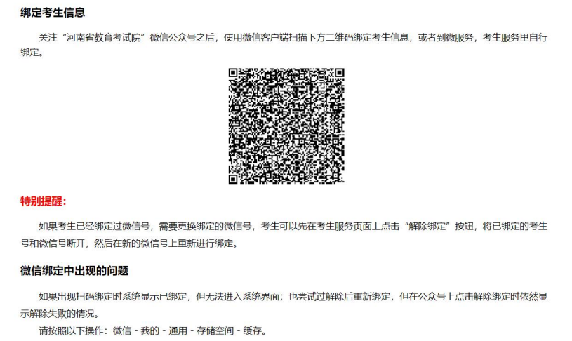 1.未绑定河南省教育考试院官方微信公众号的考生,则无法进行报考。请根据下图所示,点击微信绑定按钮。