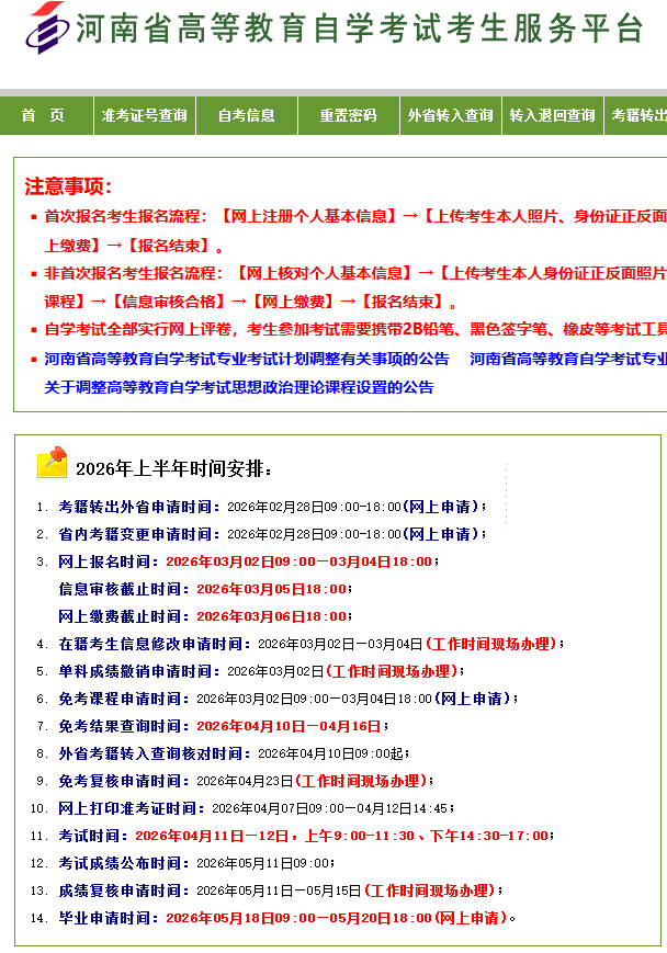 首页 > 自考报名> 河南自考报名 > 2026年河南自学考试报名时间3月2日-3月4日
