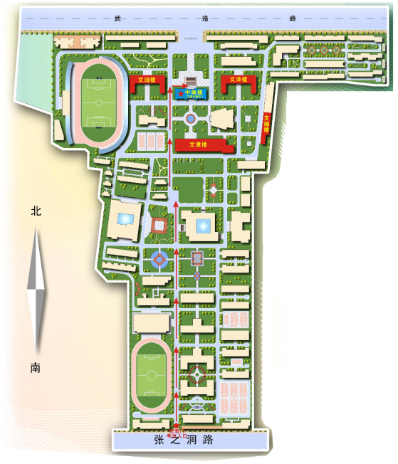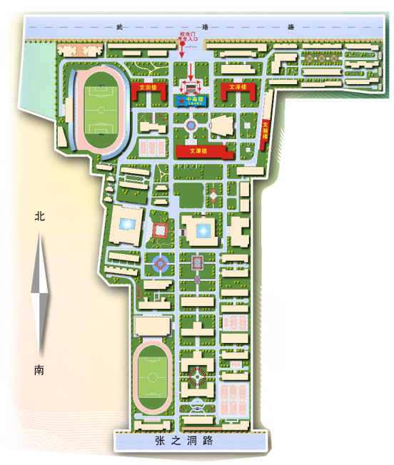 中南财经政法大学10月自学考试考场安排在首义校区文泽楼、文润楼、文津楼和文瀚楼(原首义校区自修学院楼)。根据考试安排,首义校区在考试期间进校通道为北门(武珞路)和南门(张之洞路)。考生可从首义校区南门或北门进入学校,进入学校后需先前往指定的手机存放点入口处(中南楼北门)排队存放手机,然后根据手机存放点出口处(中南楼南门)的各楼栋路线示意图前往各考点楼栋,参考路线图如下: