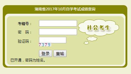 2017年10月湖南自学考试成绩查询入口已开通。