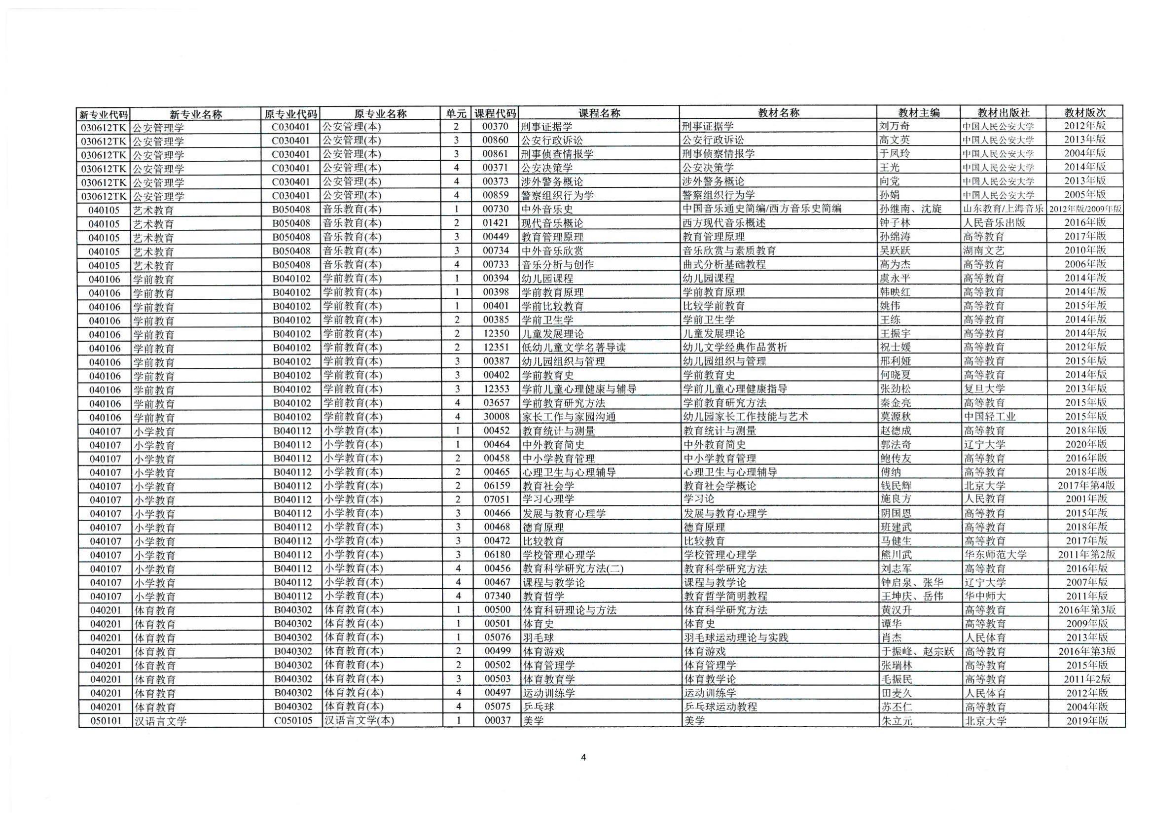 三、上述考试课程安排及教材目录将在湖南省高等教育自学考试自助服务系统(http://zikao.hneao.cn/net)中发布。目录发布后如仍有因教材出版社断供造成个别课程教材发生变更的,我院将在自助服务系统中另行发布变更通知。各有关单位要严格按照考试课程安排及指定教材版本组织教学,严格按照目录指定的教材名称、作者、出版社以及版次向考生供应教材,不得使用其他版本的教材及盗版教材。教材订购事宜可联系高等教育出版社等授权的北京培深文化有限公司长沙分公司,电话0731-82233191,地址:长沙市芙蓉区文艺路街道人民中路65号东二楼二层东侧(湖南省建筑设计院内),也可通过其他渠道订购。
