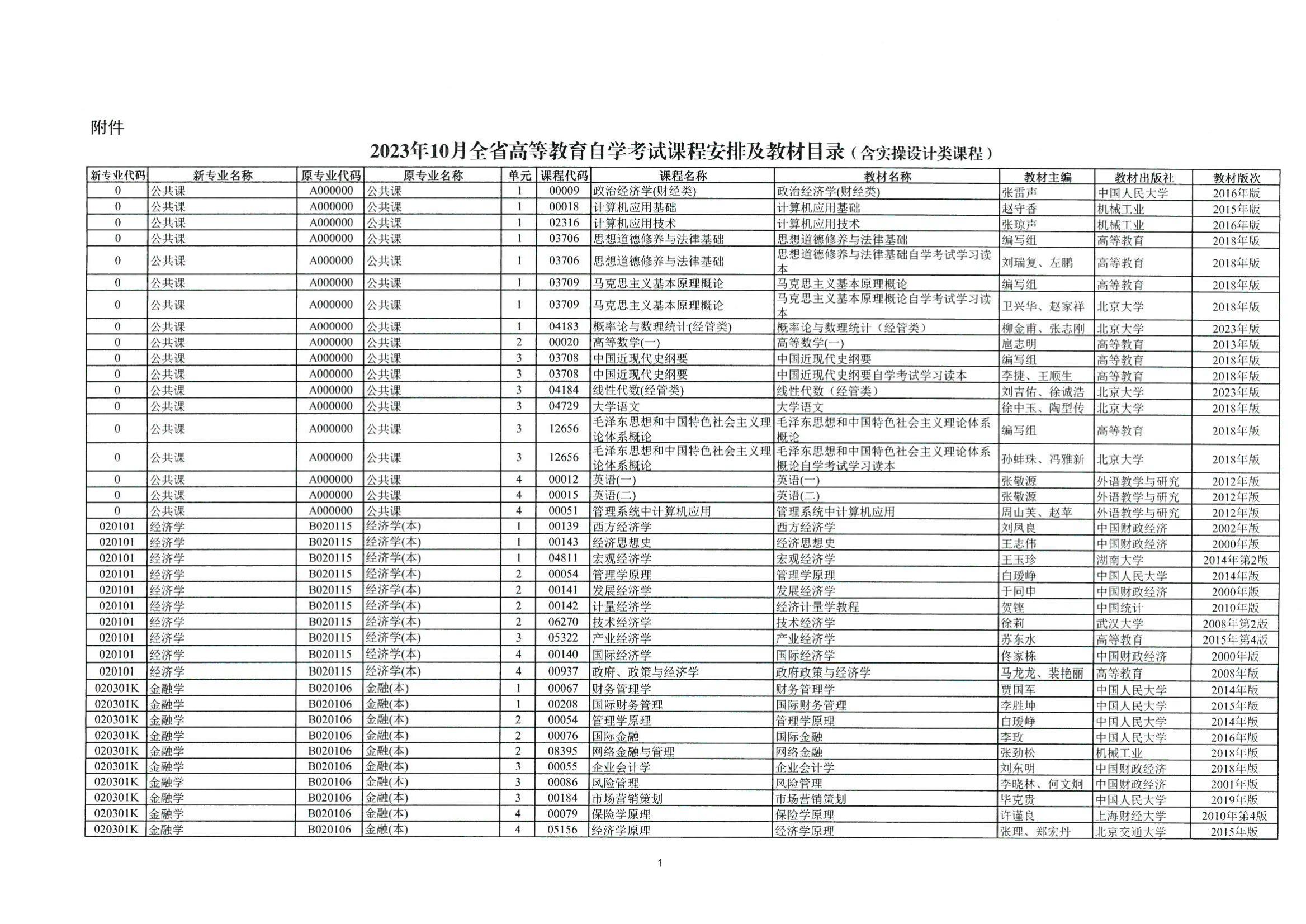 按照教育部教育考试院《关于2023年高等教育自学考试全国统考课程安排有关事项的通知》(教考院函〔2022〕90号)要求,结合我省实际情况,现将2023年10月全省高等教育自学考试课程安排及教材目录印发给你们,并就有关事项通知如下: