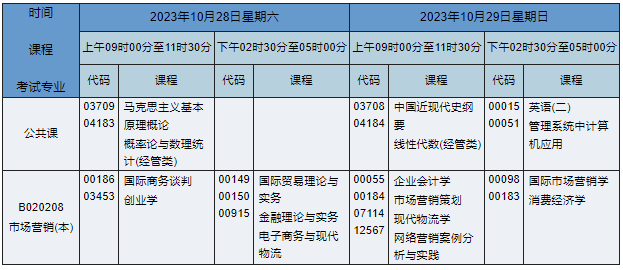 2023年10月湖南自考本科市场营销专业课程安排表