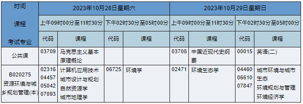 2023年10月湖南自考本科资源环境与城乡规划管理专业课程安排表