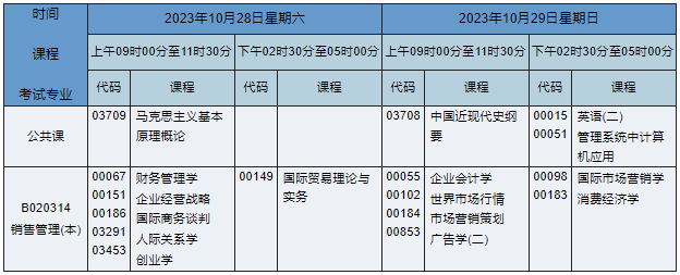 2023年10月湖南自考本科销售管理专业课程安排表