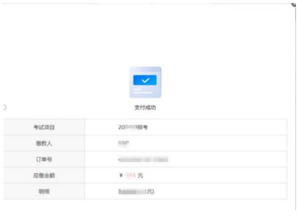 考生缴费成功后,在返回的支付界面点击“支付完成后刷新支付状态”,系统会出现“支付成功”提示信息,即表示缴费成功,如下图所示: