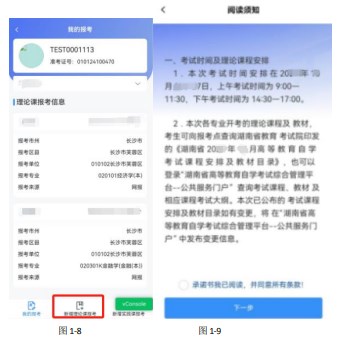 第四步课程报考并确认点击上图1-8报考界面下方的“新增理论课报考”图标,进入图1-9界面,阅读完阅读须知,并勾选“承诺书我已阅读,并同意所有条款!”再点击“下一步”按钮,进入图1-10界面,选择报考市州、报考区县、报考单位、报考专业及开考课程(报考课程),再点击“下一步”按钮,进入图1-12界面,点击“确认”按钮,锁定本次报考名额。