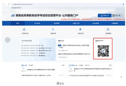 第一步下载“潇湘自考”APP。华为、小米、苹果手机在应用商店搜索“潇湘自考”下载安装APP,其他品牌手机可在PC端打开浏览器(推荐使用谷歌浏览器),在地址栏输入“https://nzkks.hneao.cn”后,进入门户首页界面,如图1-1所示,通过手机微信扫一扫上图二维码,下载潇湘自考APP安装包,并安装,已下载过“潇湘自考”APP的考生,请确认已更新到最新版本。