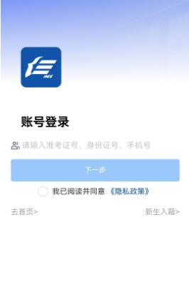 图 1-3 输入账号(准考证、身份证、手机号),并勾选“我已阅读并同意《隐私政策》”,点击“下一步”按钮,进入如下图 1-4 所示登录界面,该界面支持 3 种登录方式: