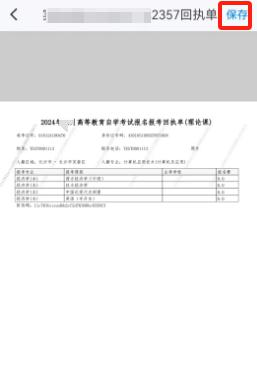 缴费完成后,进入 APP,显示下图 1-18 界面中,点击左上角的“<”按钮,返回报考界面,如下图 1-19 所示,点击“确认”按钮,进入如图1-20 所示界面,点击“下载回执单”按钮,进入图 1-21 所示界面,点击右上角的“保存”按钮即可下载回执单至本手机。