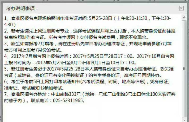 2017年下半年江苏省自考网上报名考生注意事项